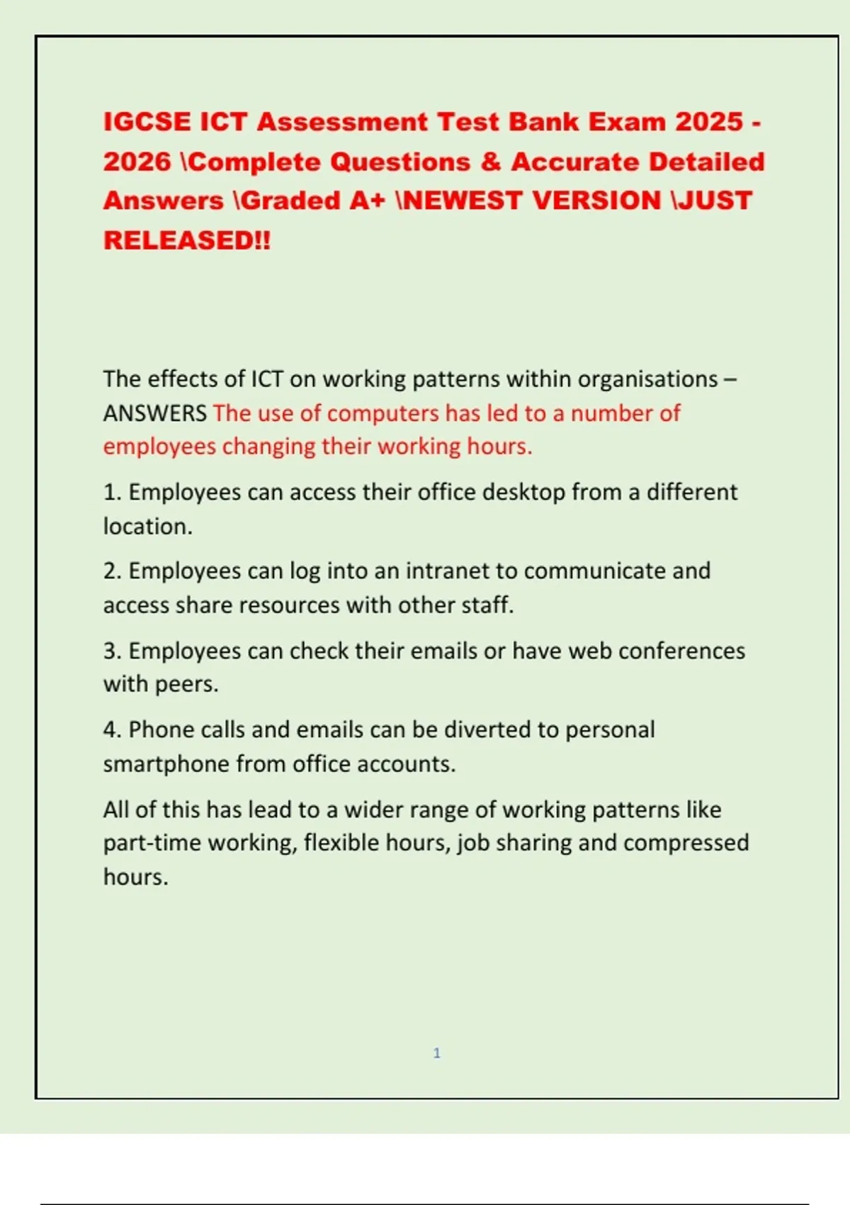 Flexible Hours - ANSWERSThe employees can control the hours