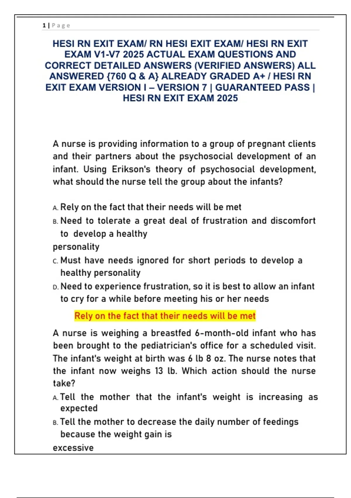 ANSWERED {760 Q & A} ALREADY GRADED A+ / HESI RN