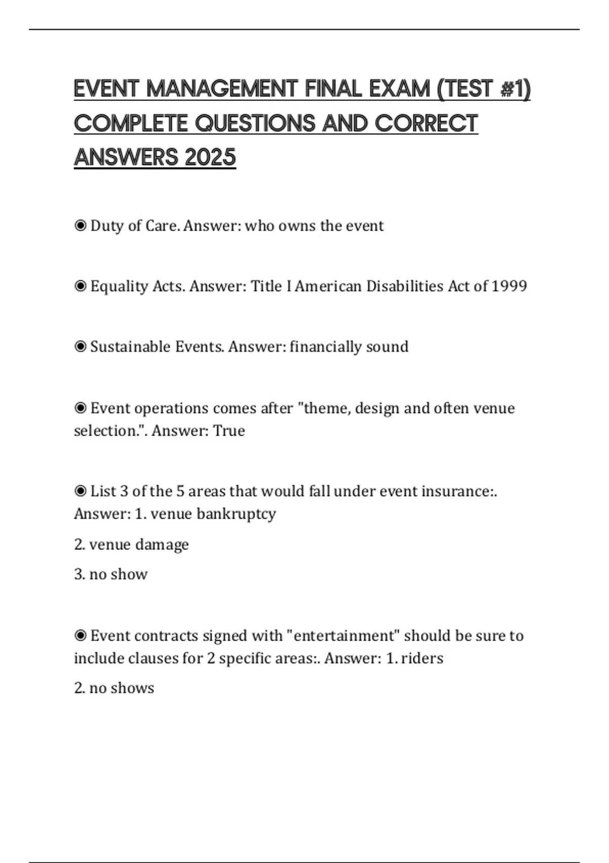 ◉ Sustainable Events. Answer: financially sound