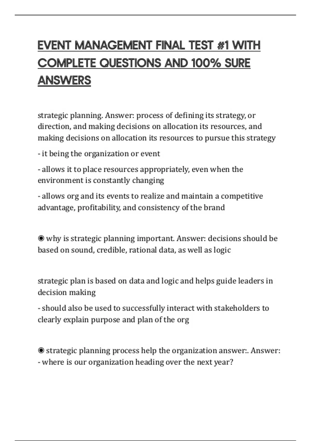 ◉ why is strategic planning important. Answer: decisions should be
