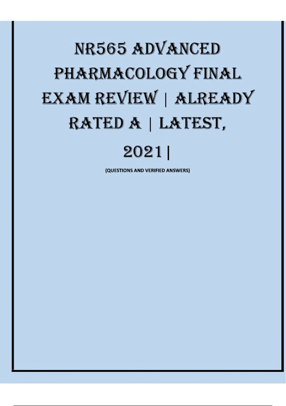 NR565 Advanced Pharmacology Final Exam Review 2025–2026 Rated A – Full Questions with Verified Answers