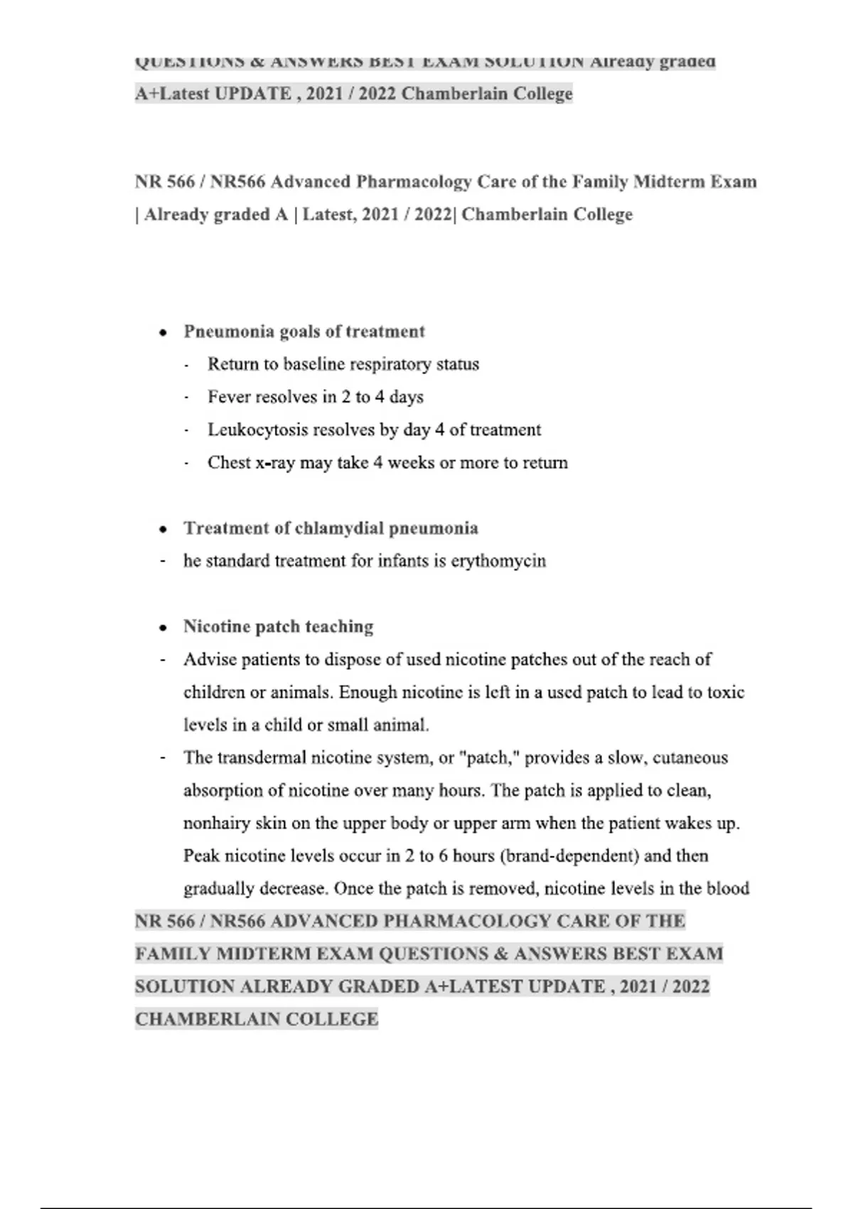 Prepare for the NR566 Advanced Pharmacology Care of the Family Midterm Exam 2025–2026 with this comprehensive resource featuring full questions and verified answers, already graded A+. Ideal for Chamberlain College nursing students and educators, this guide supports exam preparation, mastery of pharmacology concepts, drug interactions, and advanced clinical applications.