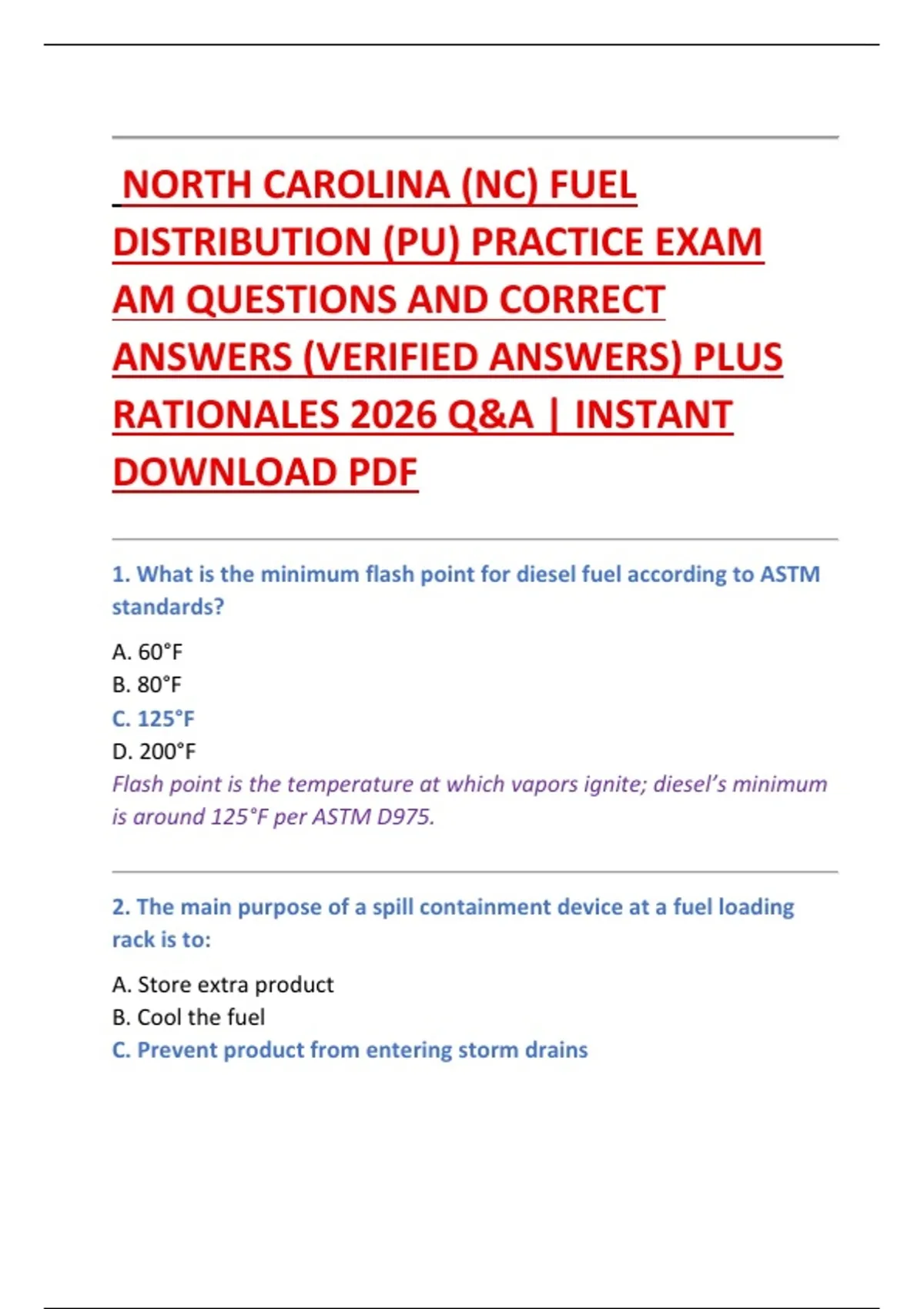1. What is the minimum flash point for diesel fuel according to ASTM