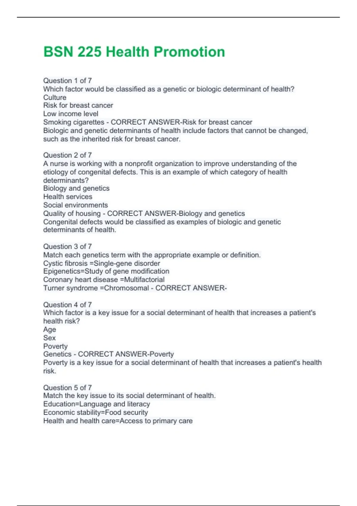 Genetics - CORRECT ANSWER-Poverty