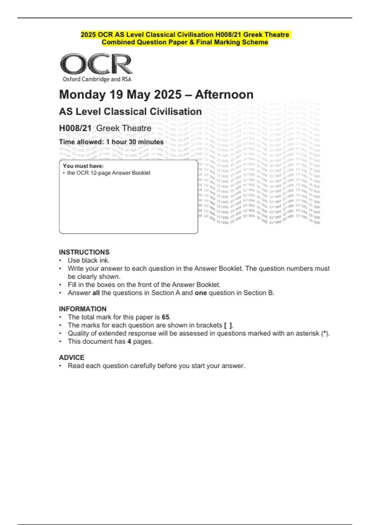 • The total mark for this paper is 65.