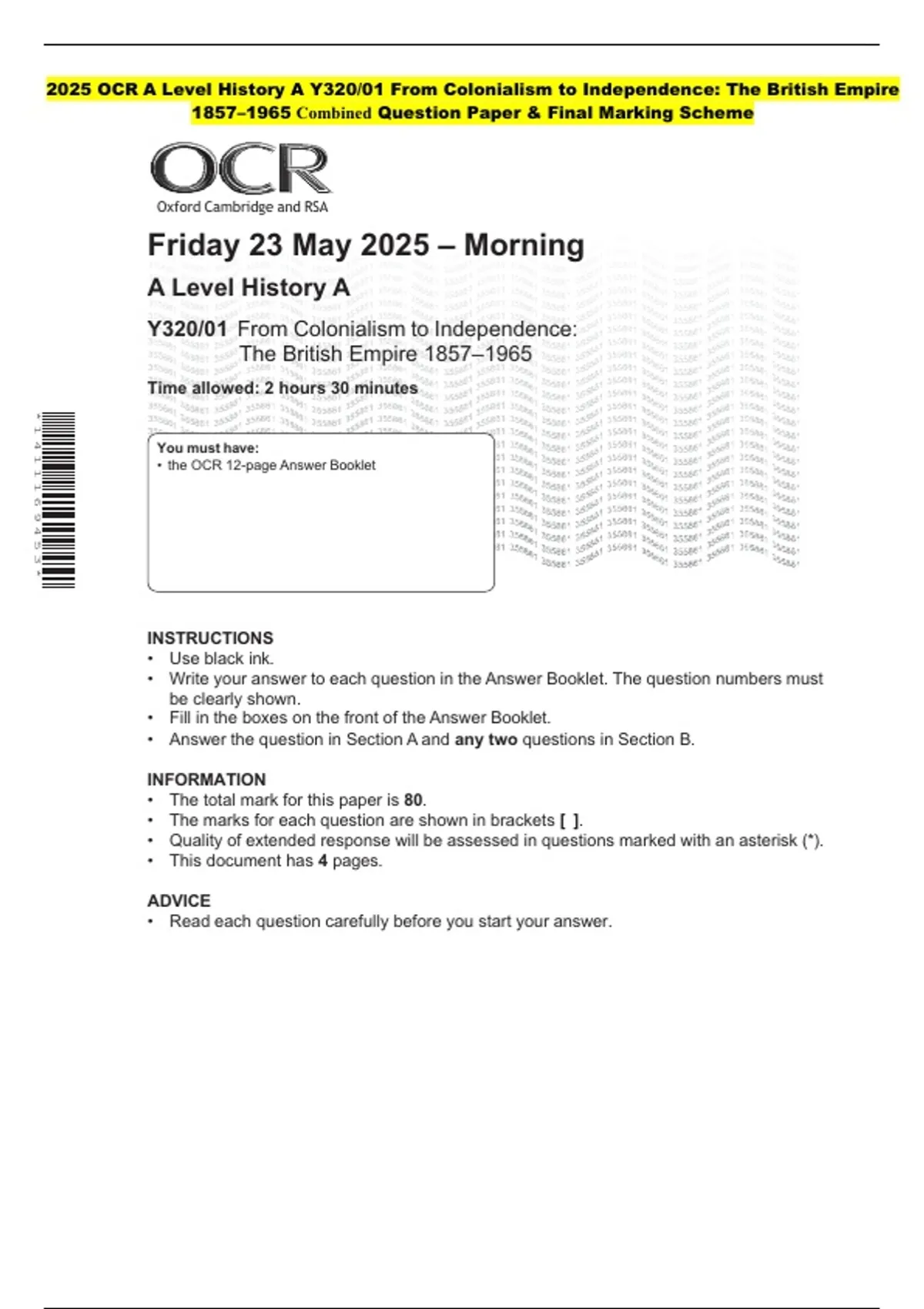 1857–1965 Combined Question Paper & Final Marking Scheme