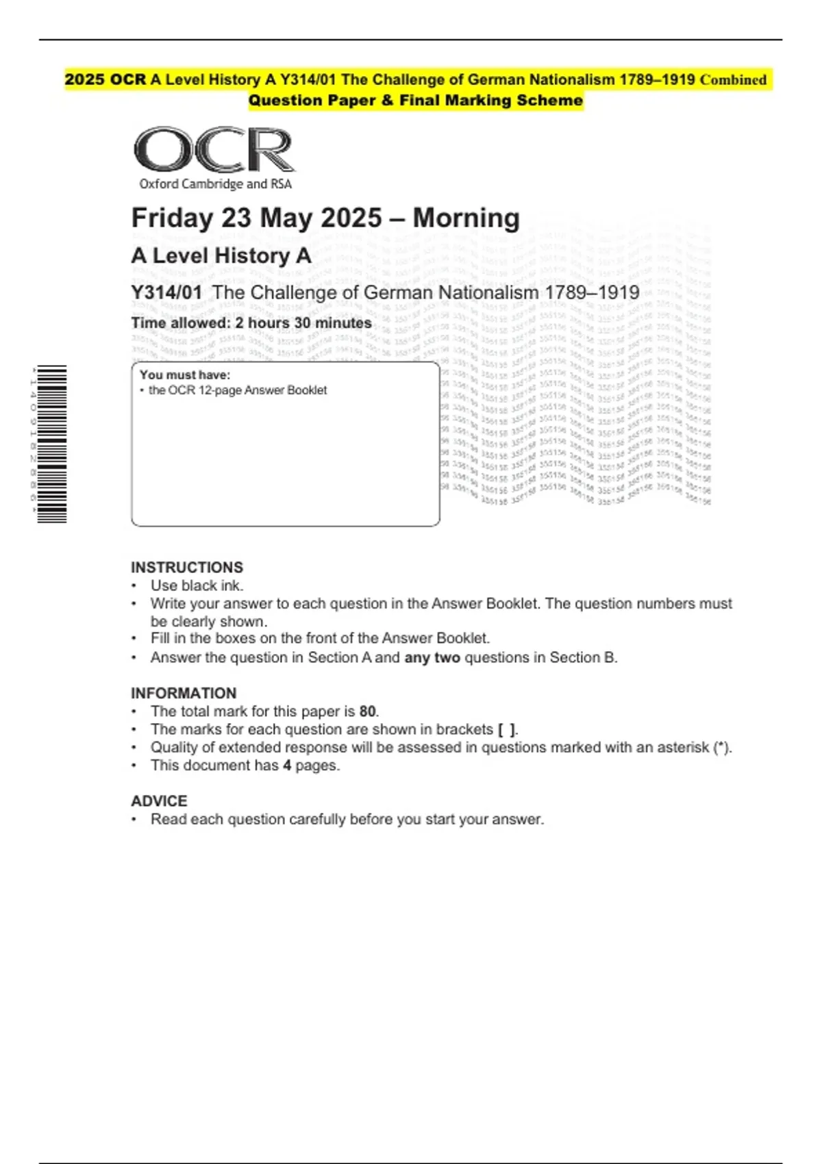 • the OCR 12‑page Answer Booklet