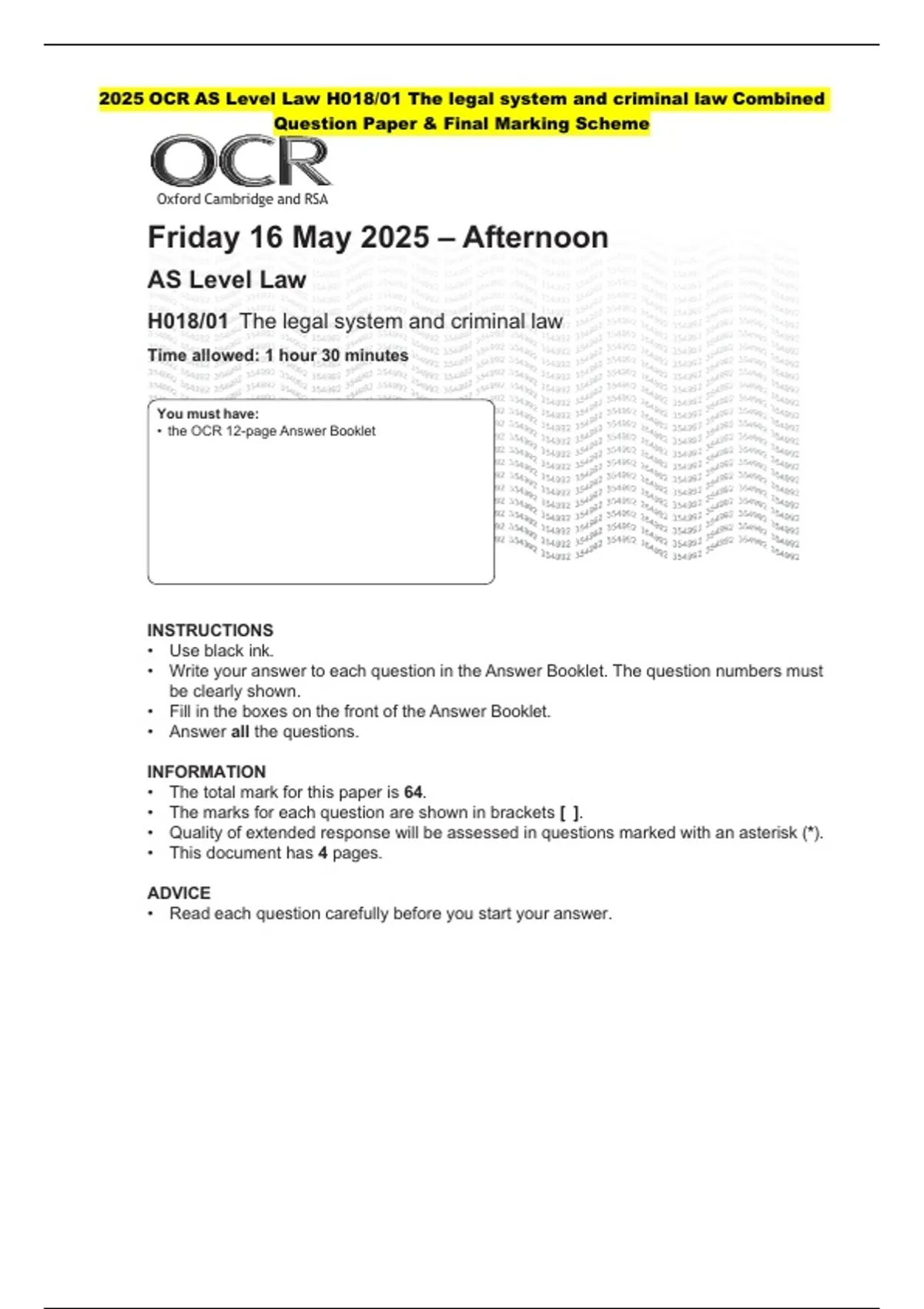 • the OCR 12-page Answer Booklet