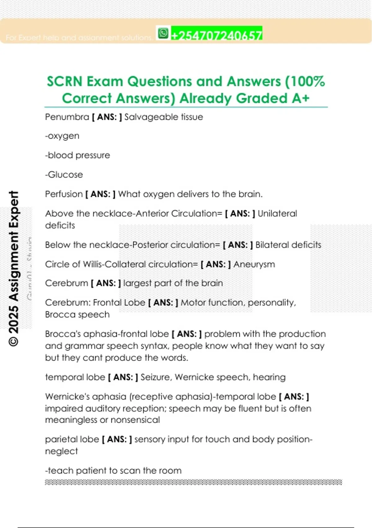 SCRN Exam Questions and Answers (100% Correct Answers) Already Graded A+