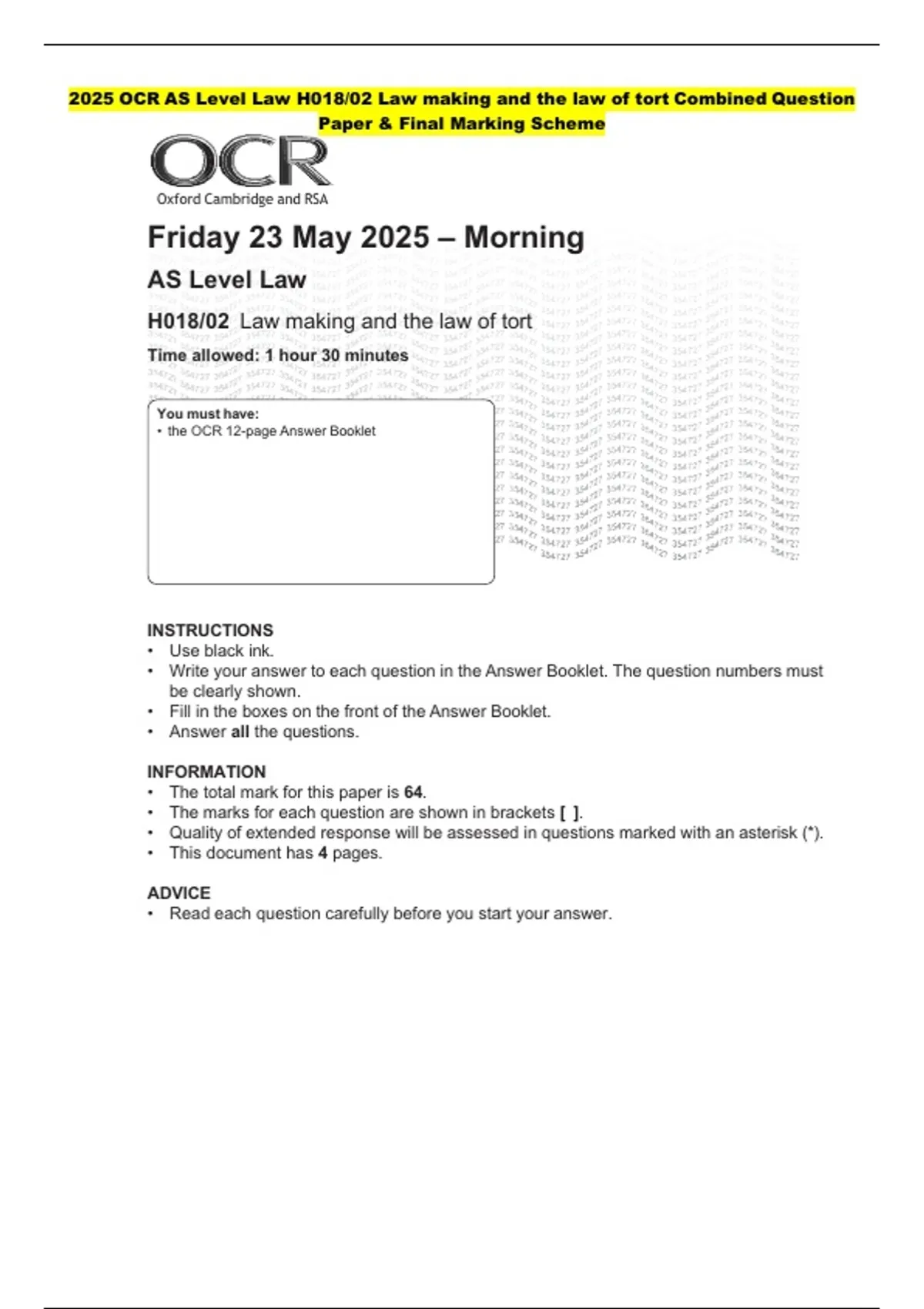 • the OCR 12-page Answer Booklet