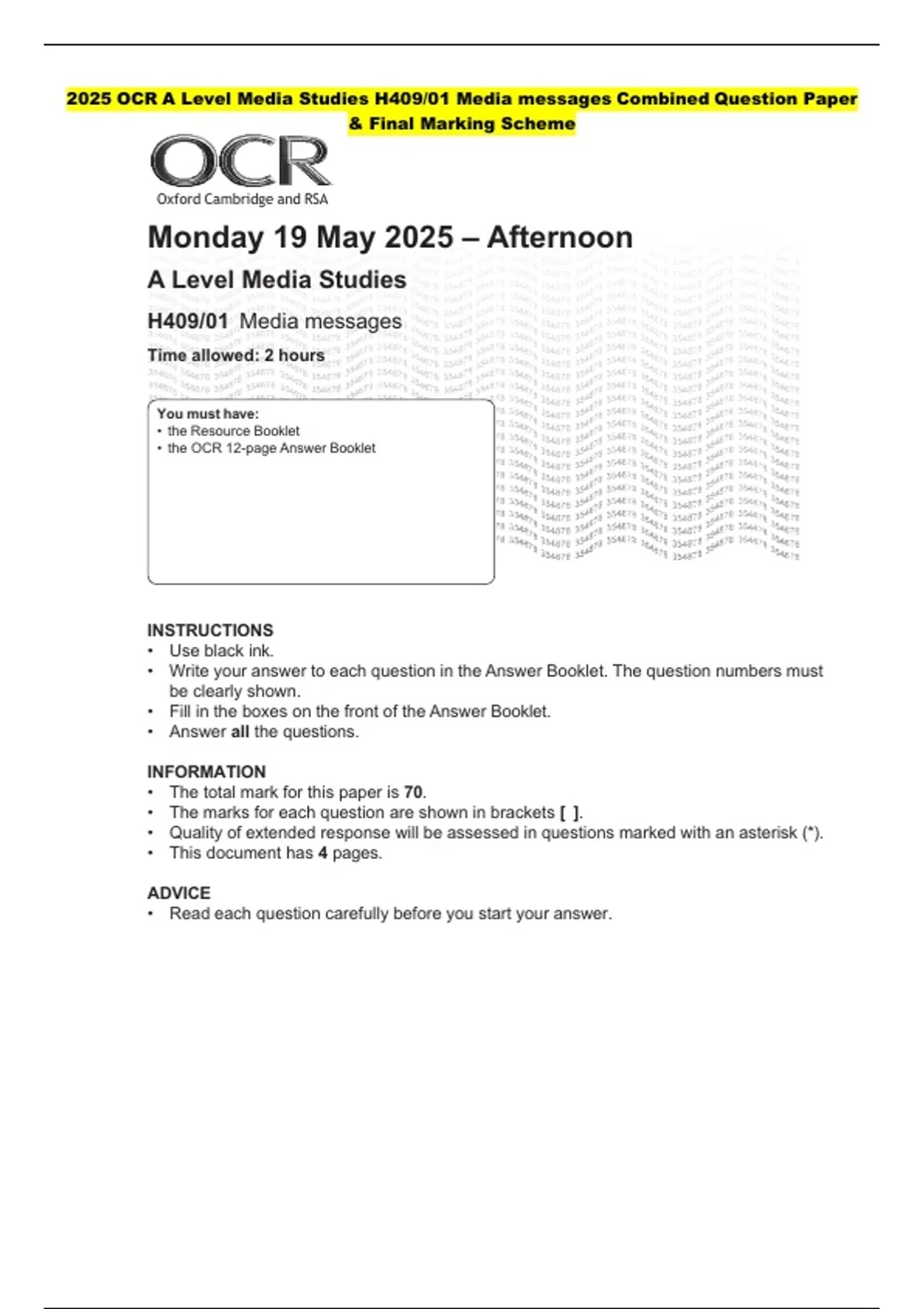 2025 OCR A Level Media Studies H409/01 Media messages Combined Question Paper & Final Marking Scheme