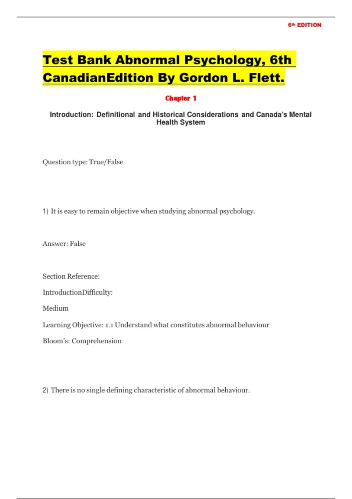 Learning Objective: 1.1 Understand what constitutes abnormal behaviour