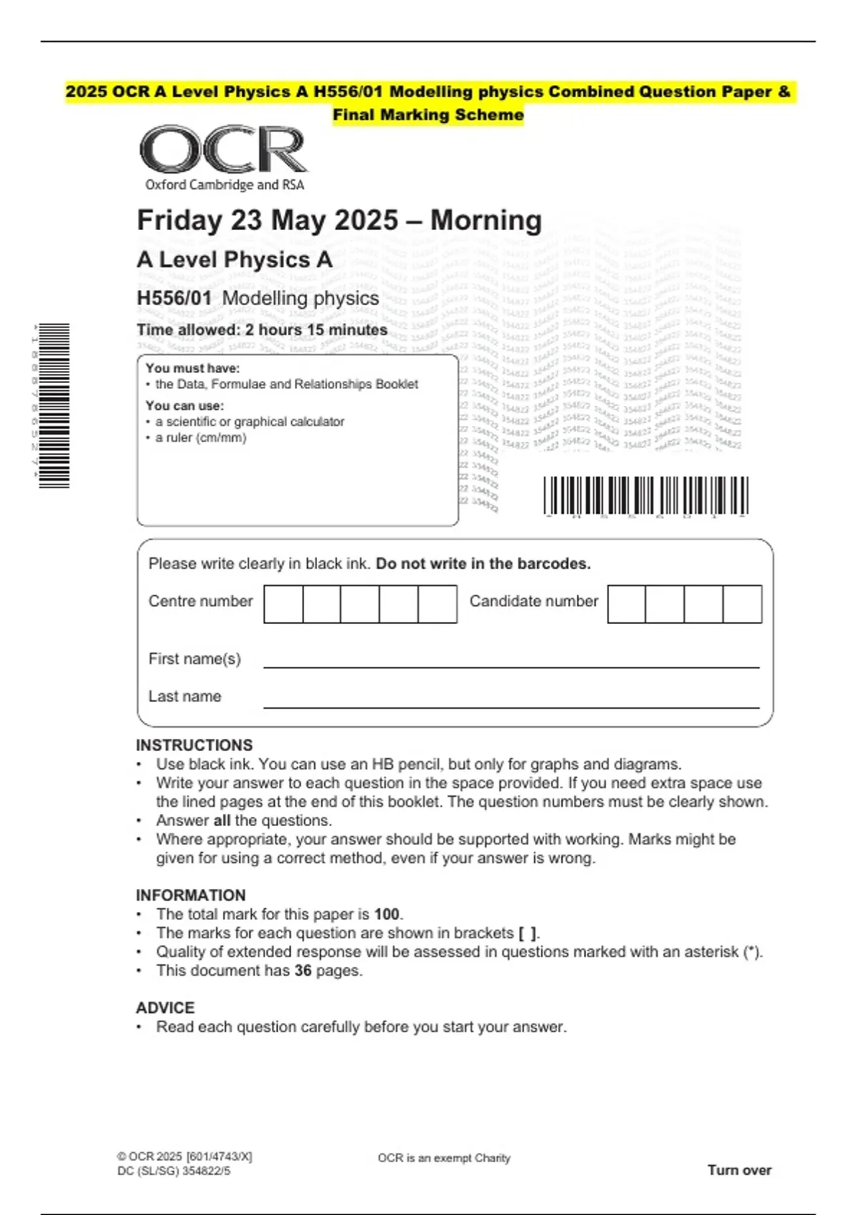 2025 OCR A Level Physics A H556/01 Modelling physics Combined Question Paper & Final Marking Scheme