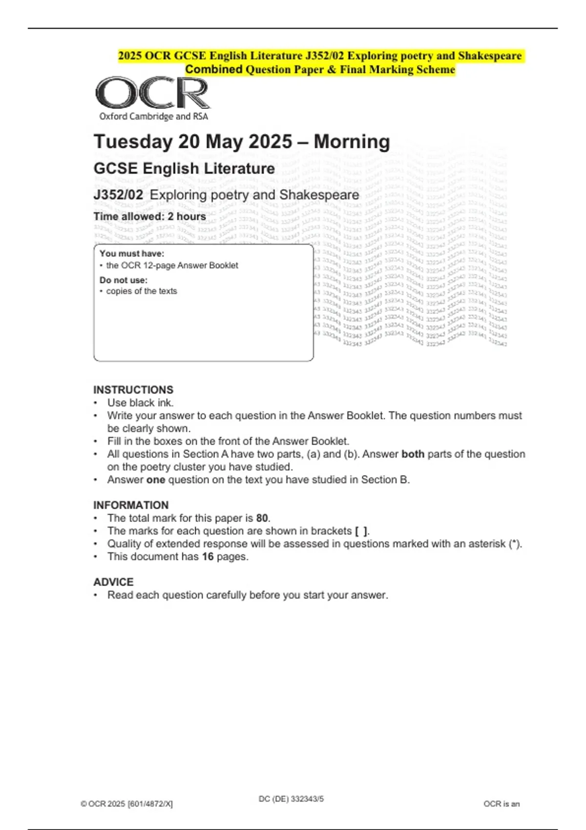 • Quality of extended response will be assessed in questions marked with an asterisk (*).