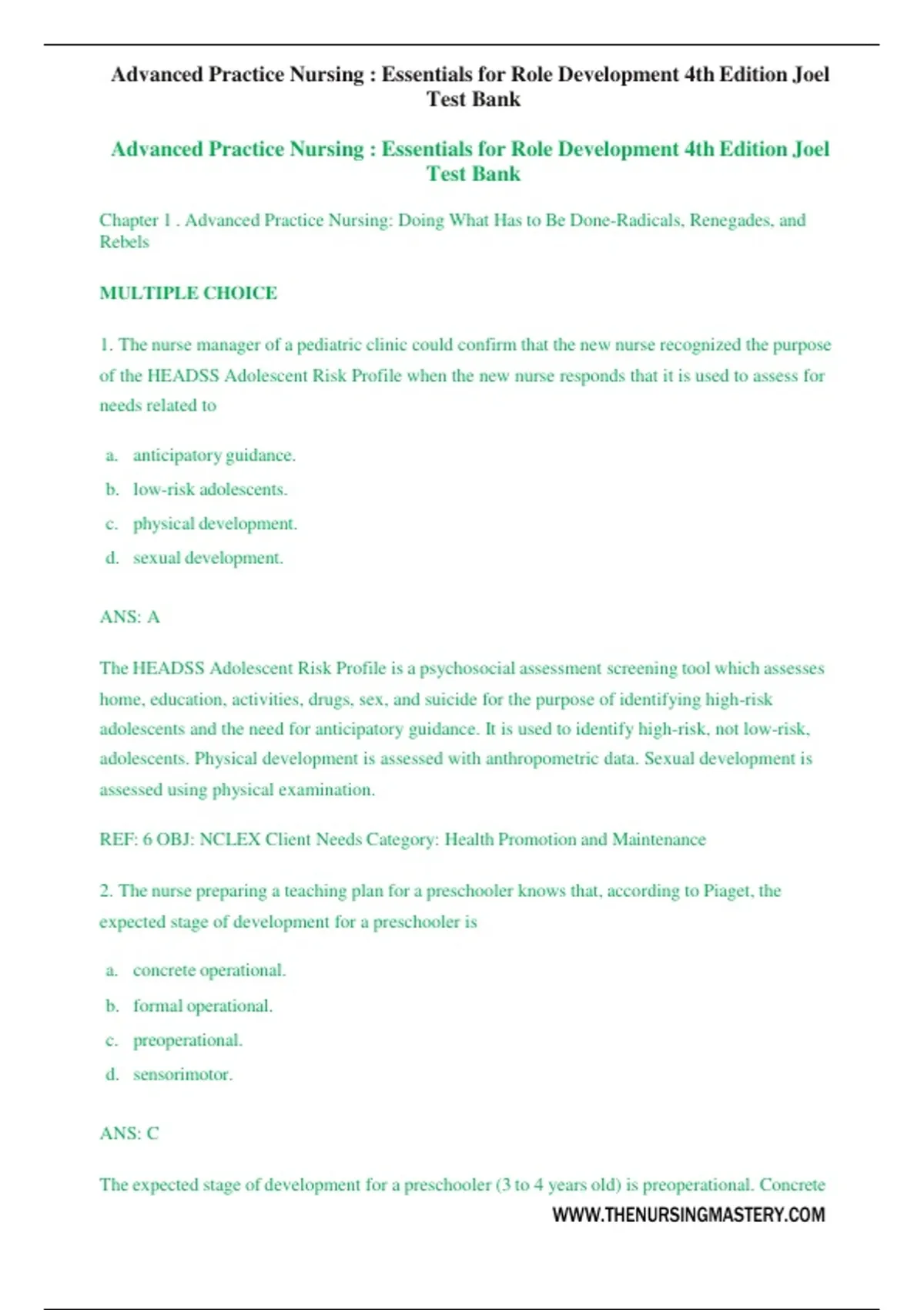 Advanced Practice Nursing : Essentials for Role Development 4th Edition Joel Test Bank