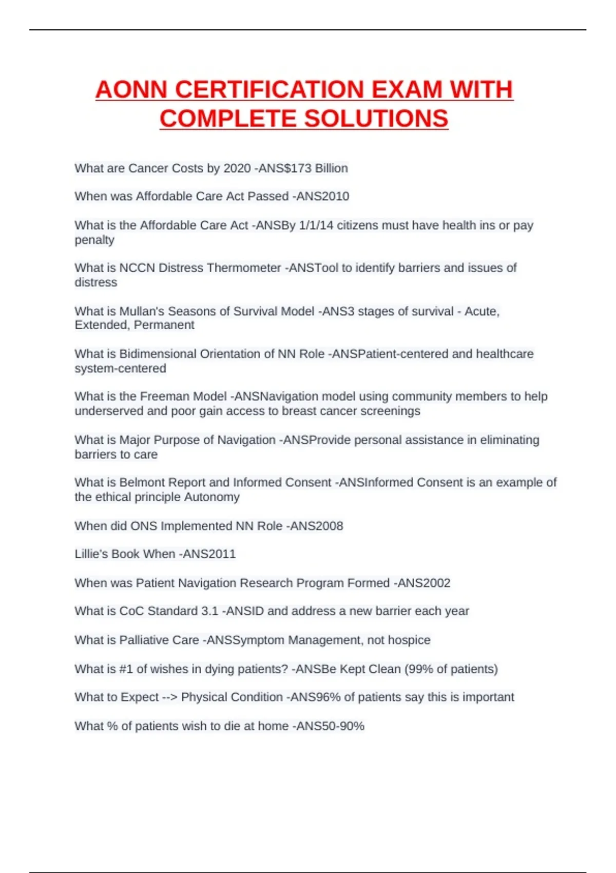 AONN CERTIFICATION EXAM WITH