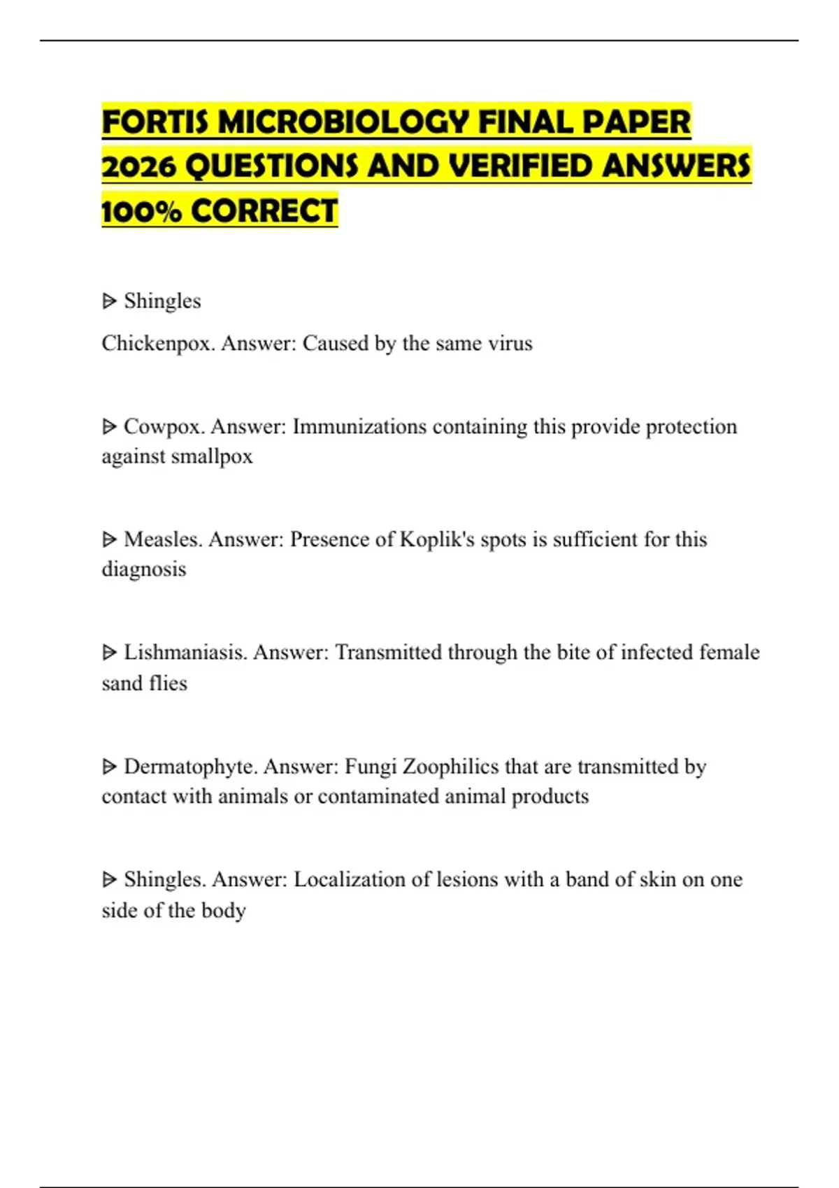 FORTIS MICROBIOLOGY FINAL PAPER 2026 QUESTIONS AND VERIFIED ANSWERS 100% CORRECT