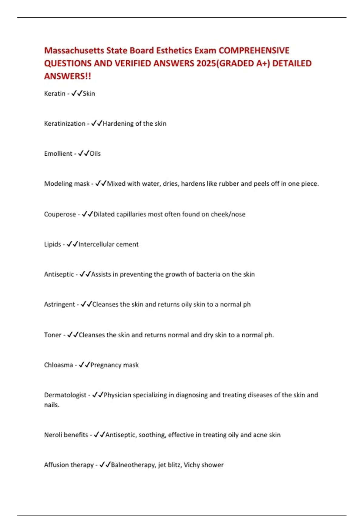 Massachusetts State Board Esthetics Exam COMPREHENSIVE