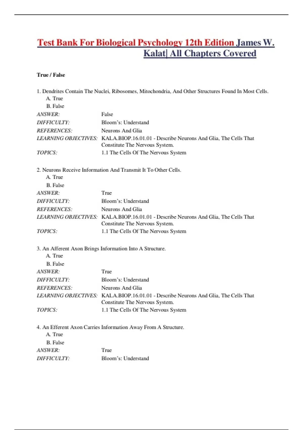LEARNING OBJECTIVES: KALA.BIOP.16.01.01 - Describe Neurons And Glia, The Cells That