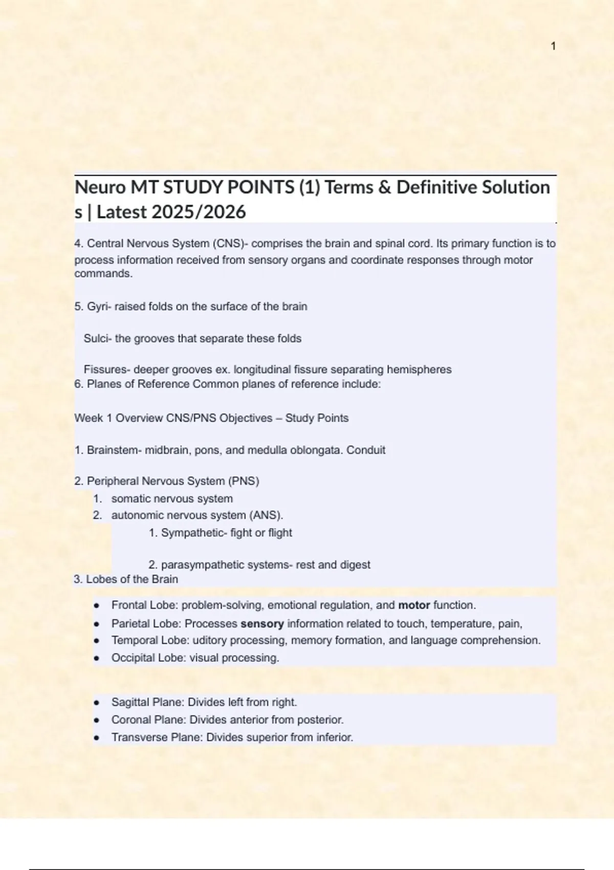 Neuro MT STUDY POINTS (1) Terms & Definitive Solution
