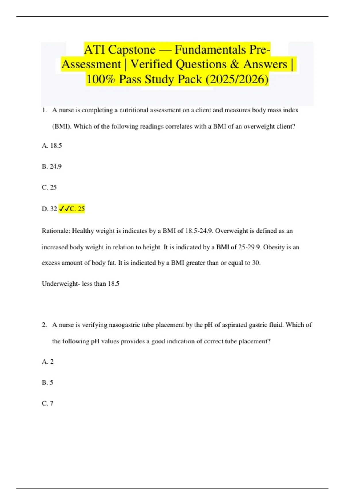 ATI Capstone — Fundamentals Pre-Assessment | Verified Questions & Answers | 100% Pass Study Pack (2025/2026)