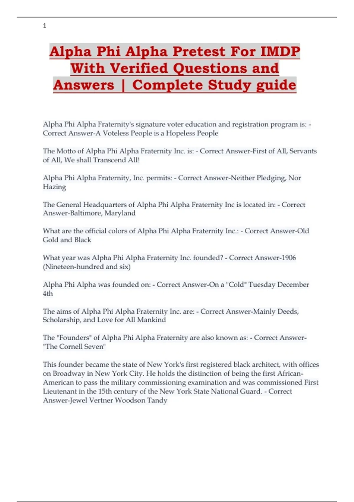 Alpha Phi Alpha Pretest For IMDP With Verified Qu