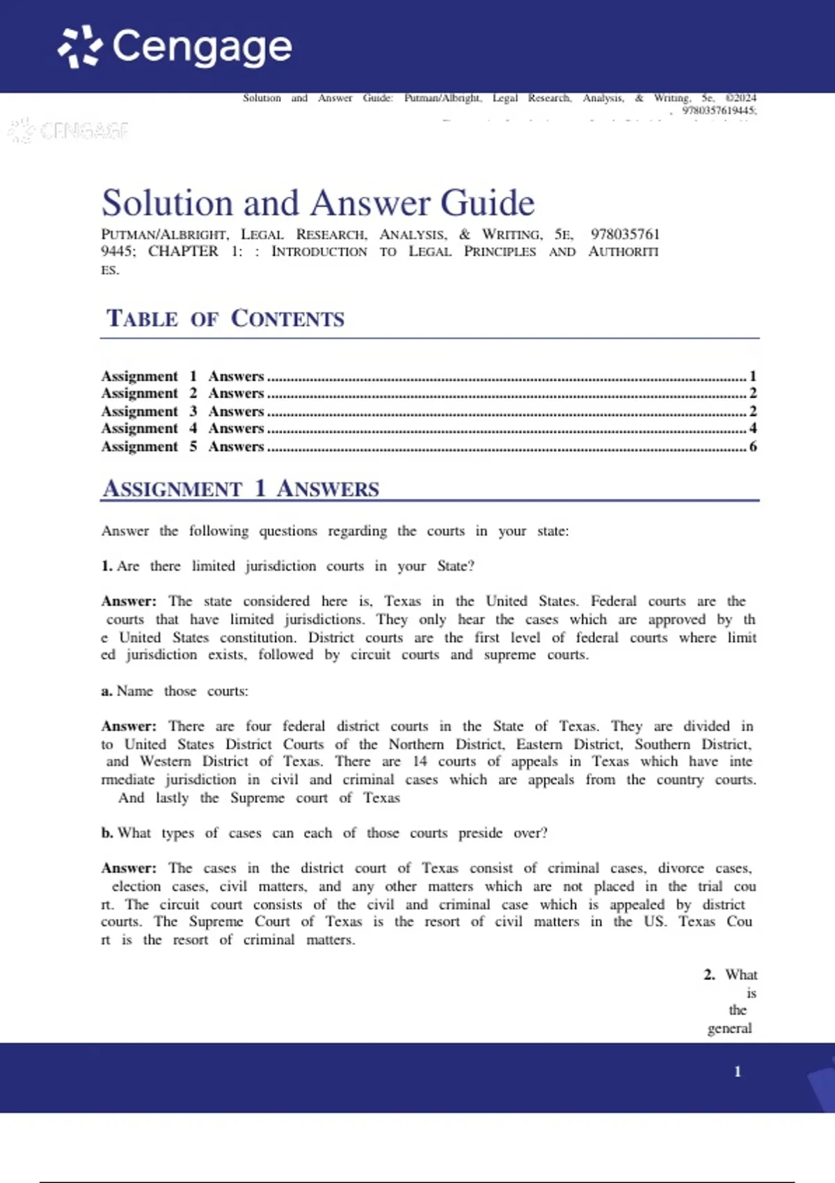Solution Manual - Legal Research, Analysis, and Writing 5th Edition by Putman & Albright All 19 Chapters Covered, Verified Latest Edition Solution Manual - Legal Research, Analysis, and Writing 5th Edition by Putman & Albright All 19 Chapters Covered, Verified Latest Edition