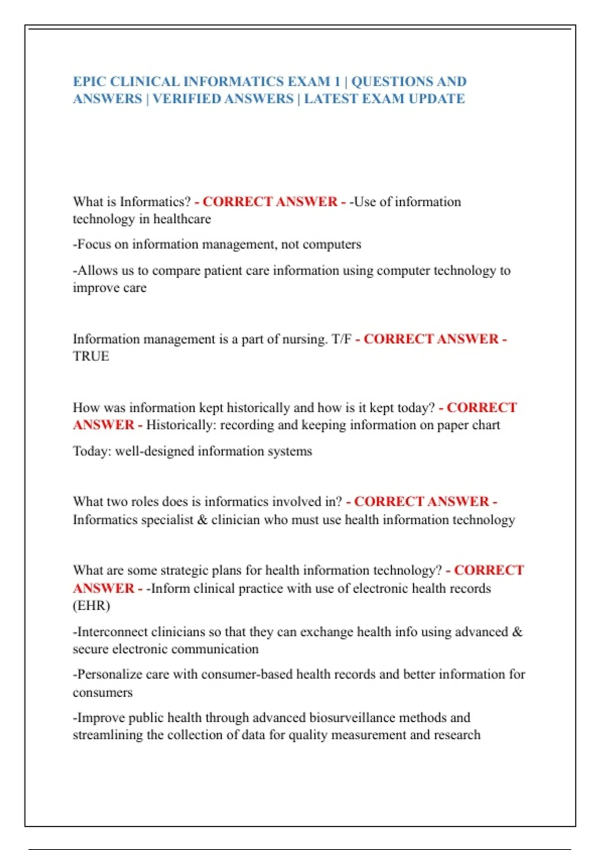 EPIC CLINICAL INFORMATICS EXAM 1 | QUESTIONS AND
