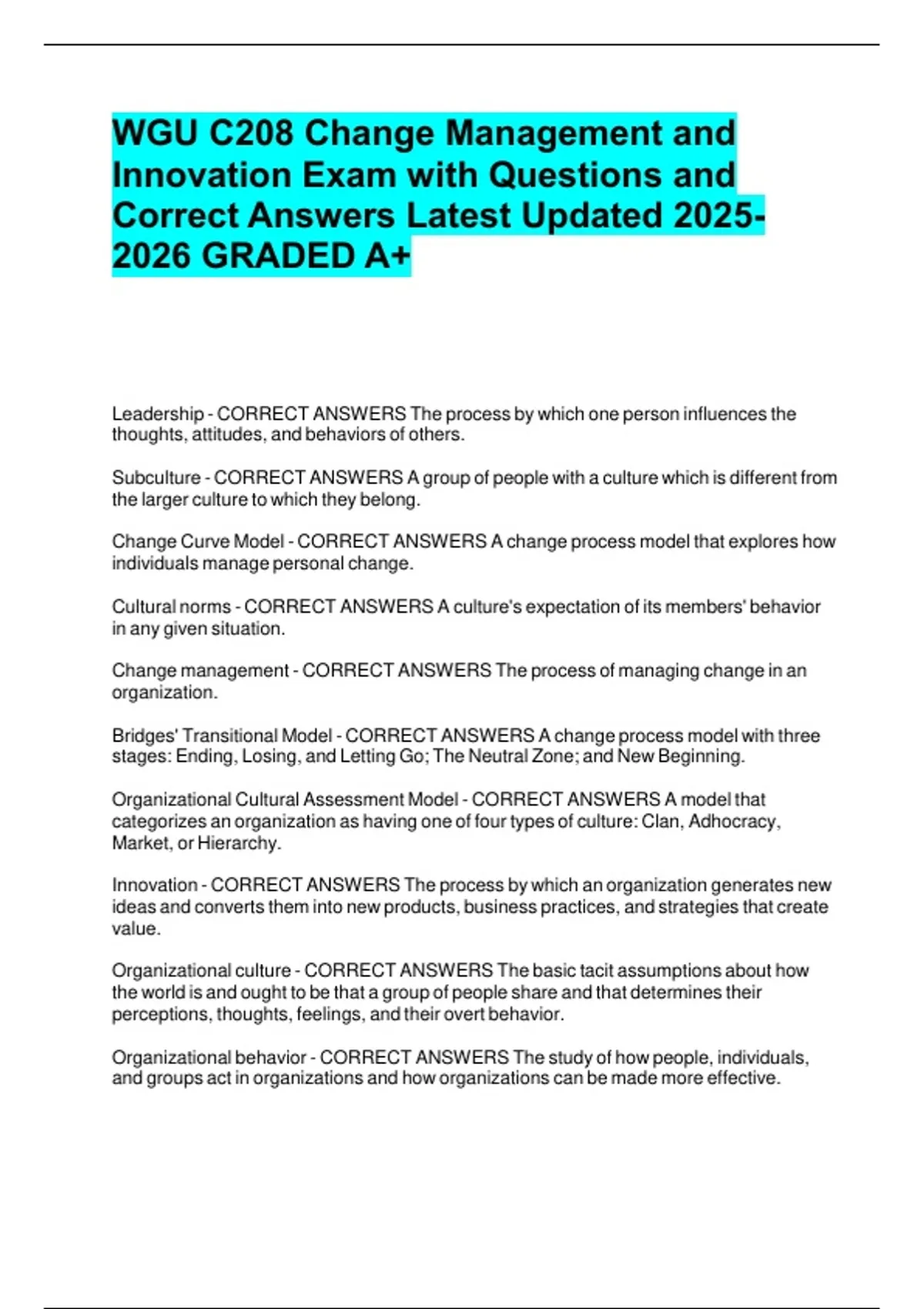 Correct Answers Latest Updated 2025-