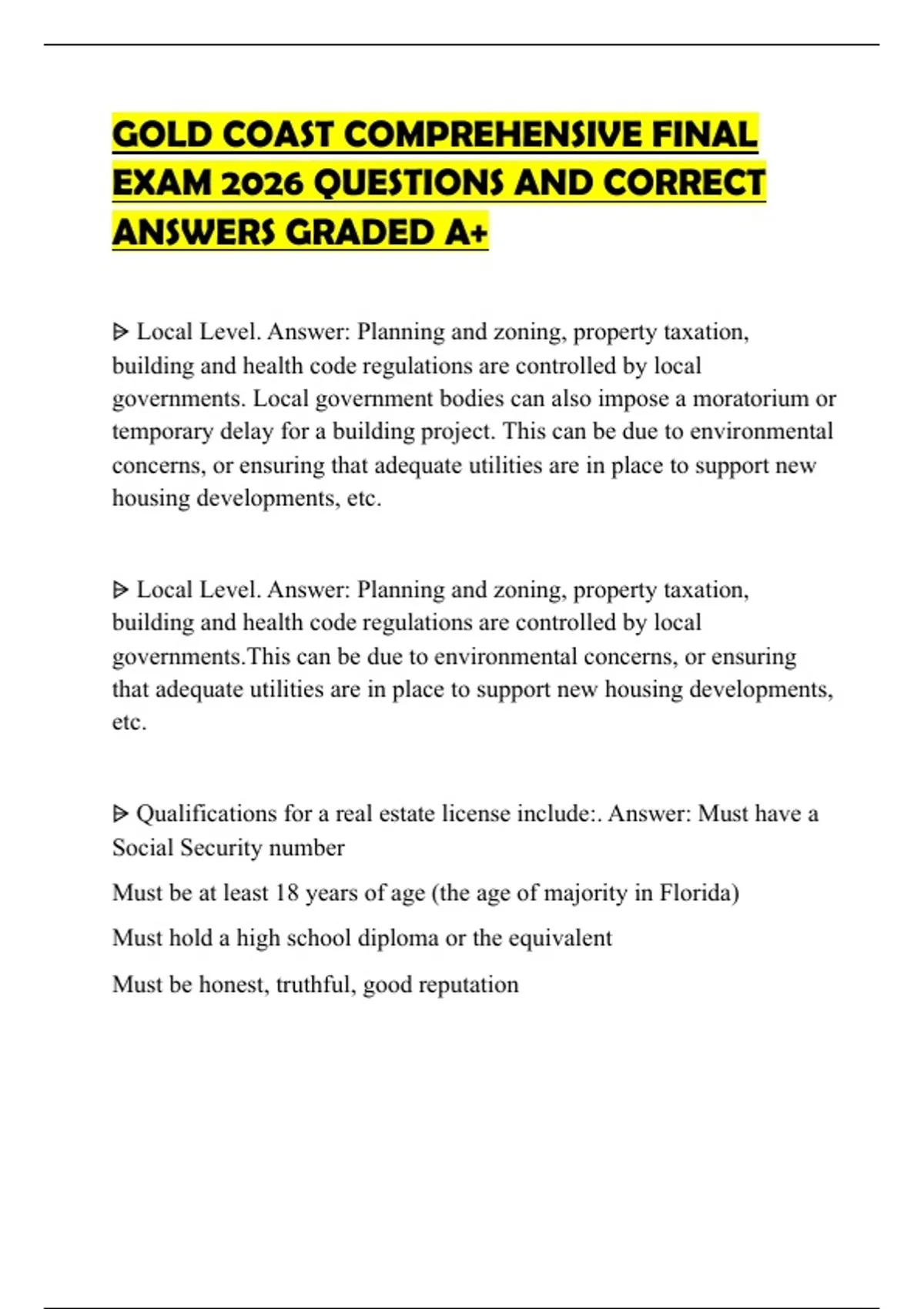 GOLD COAST COMPREHENSIVE FINAL EXAM 2026 QUESTIONS AND CORRECT ANSWERS GRADED A+