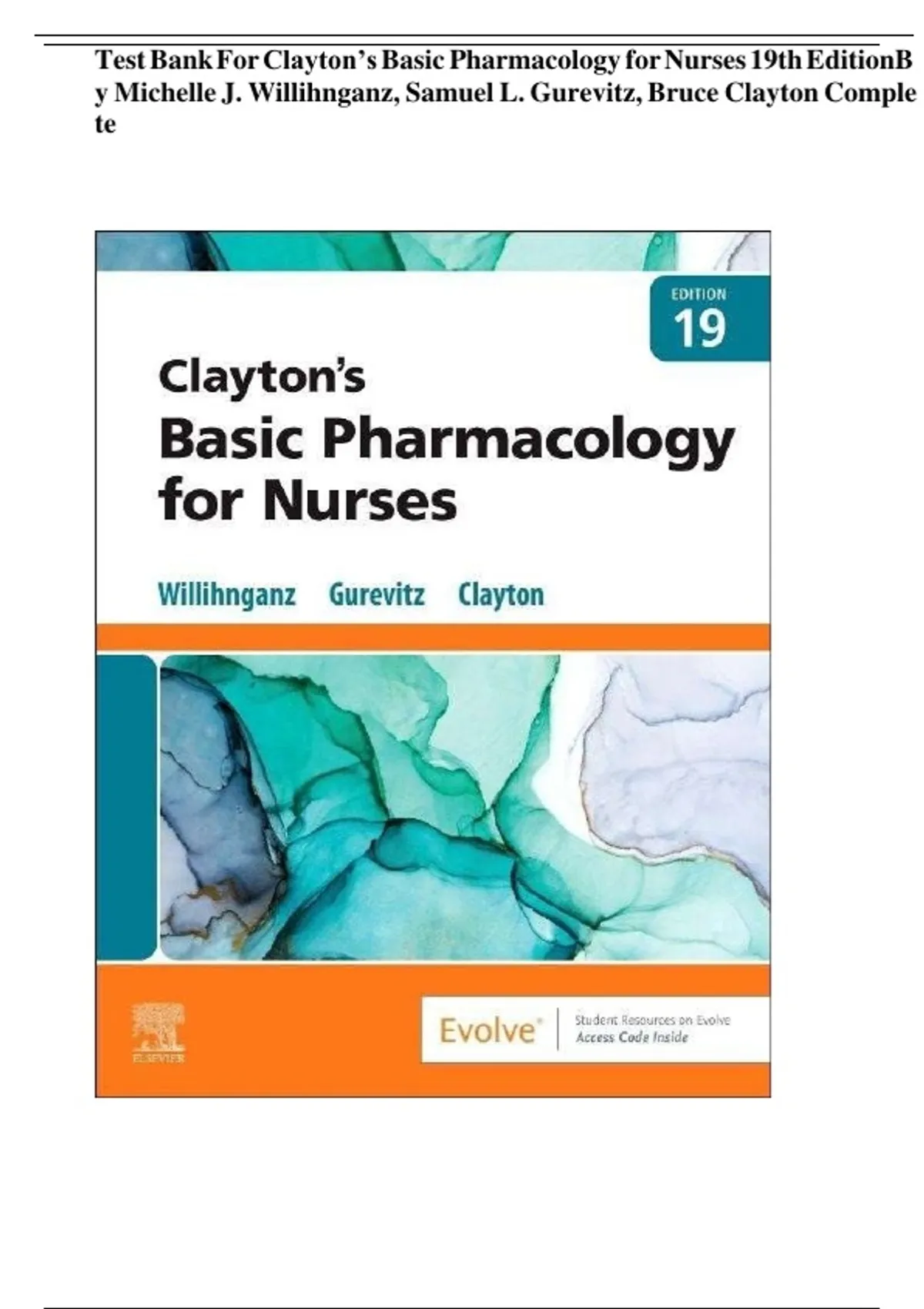 ,Test Bank For Clayton’s Basic Pharmacology for Nurses 19th Editio