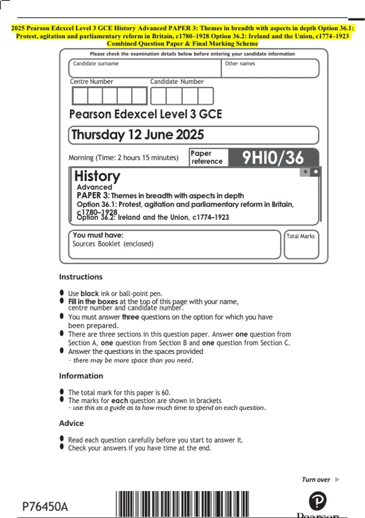 Fill in the boxes at the top of this page with your name,