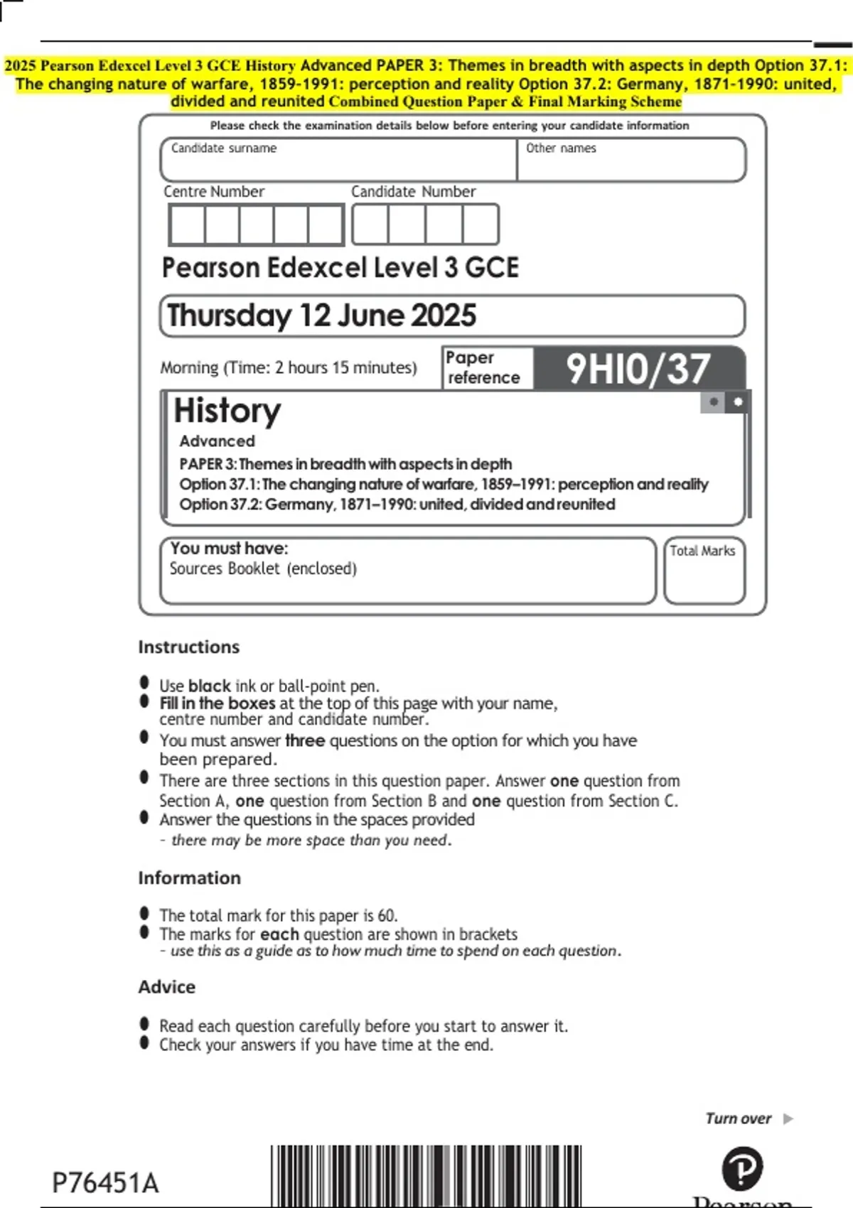 Sources Booklet (enclosed)