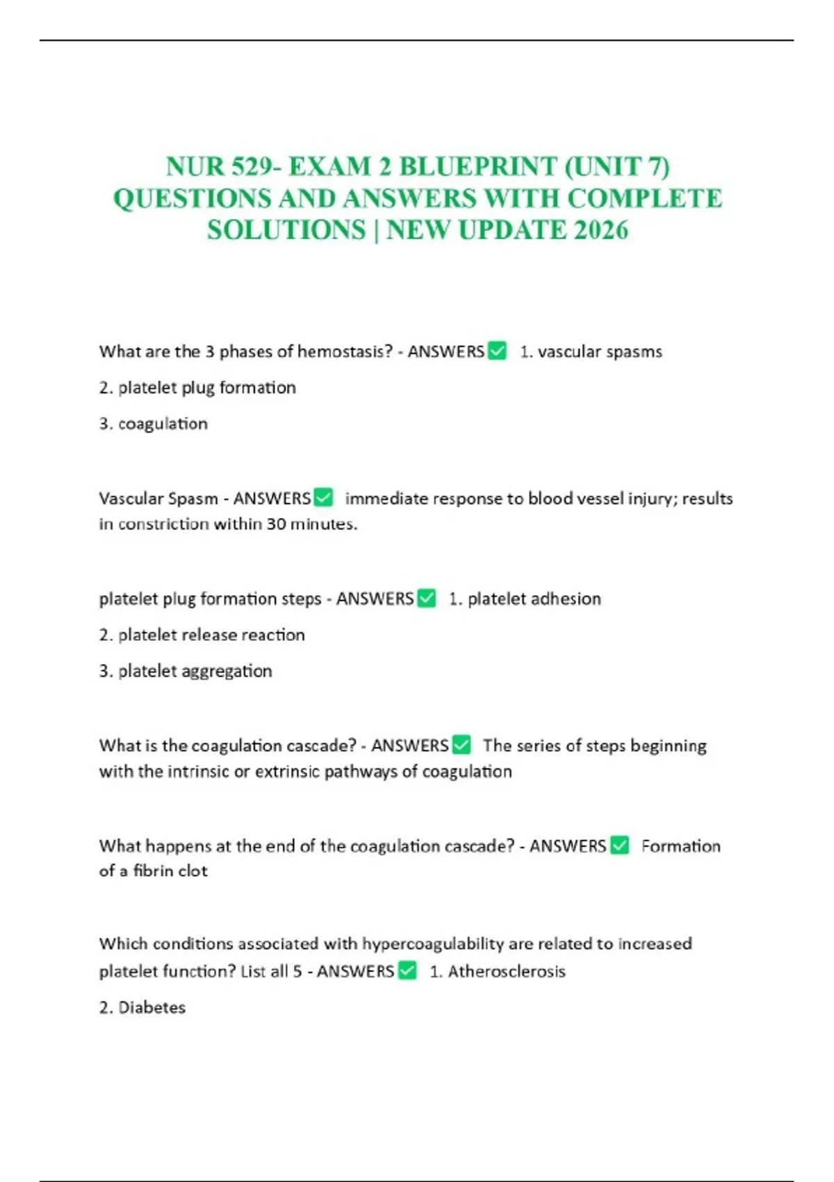 NUR 529- EXAM 2 BLUEPRINT (UNIT 7) QUESTIONS AND ANSWERS WITH COMPLETE SOLUTIONS | NEW UPDATE 2026