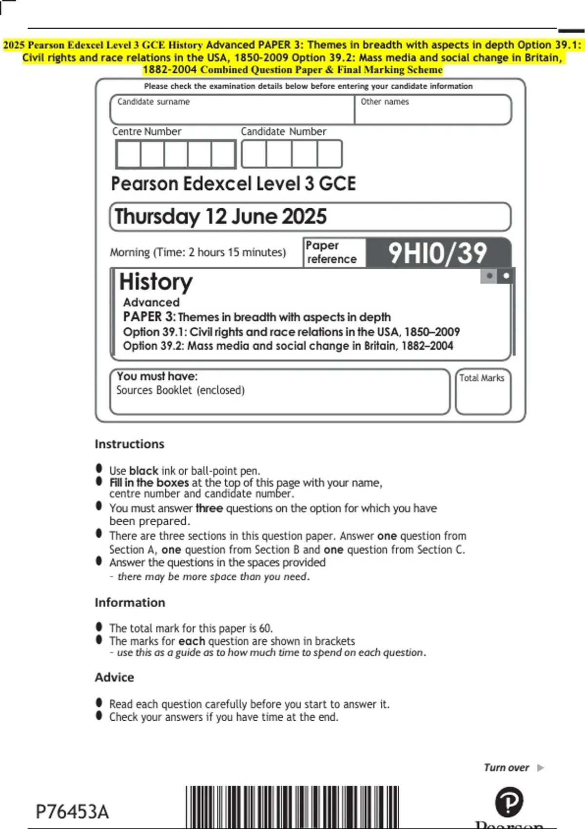 Sources Booklet (enclosed)