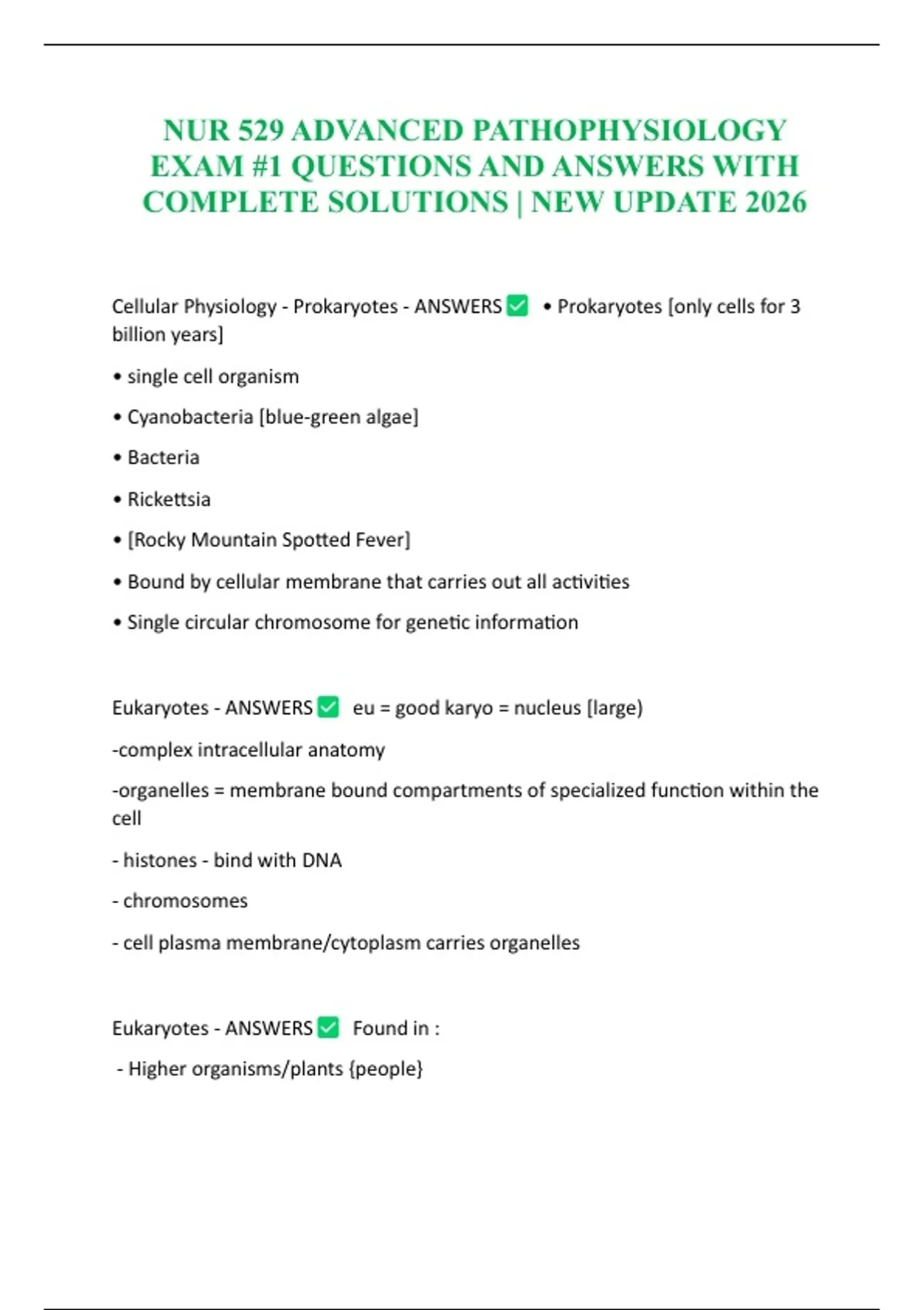 NUR 529 ADVANCED PATHOPHYSIOLOGY