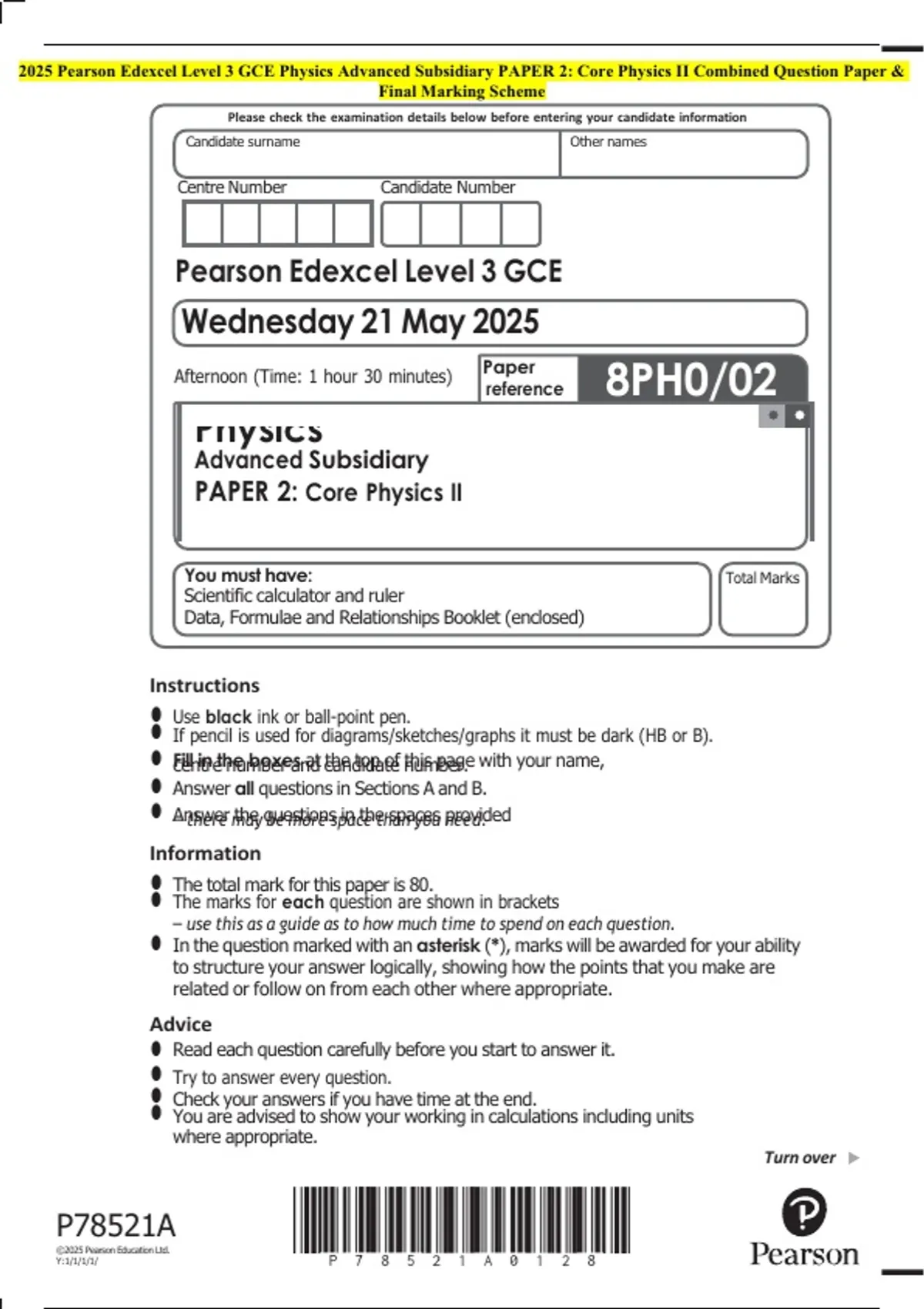 •• The total mark for this paper is 80.