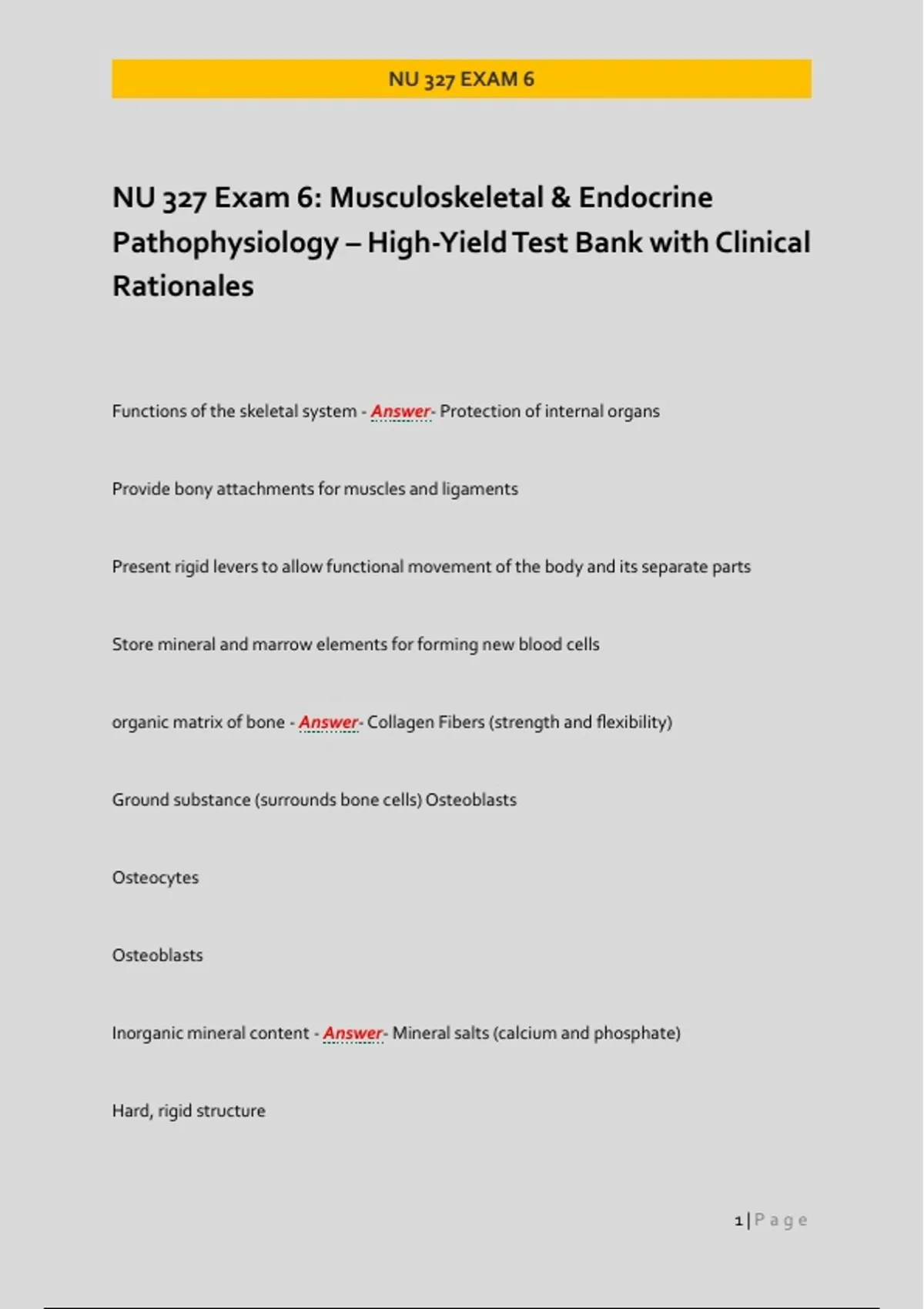 NU 327 Exam 6: Musculoskeletal & Endocrine
