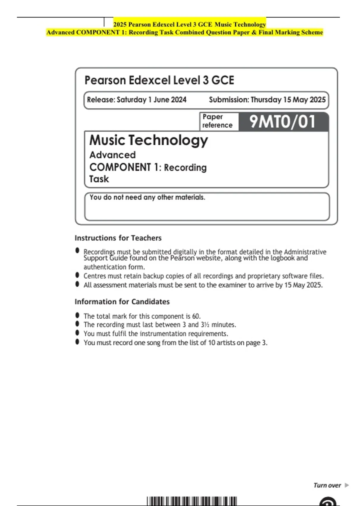 Advanced COMPONENT 1: Recording Task Combined Question Paper & Final Marking Scheme