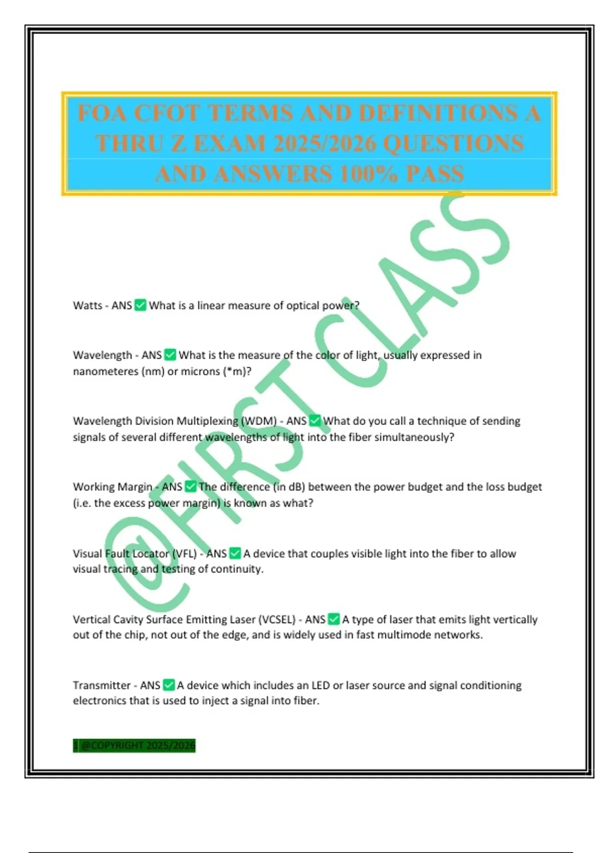 FOA CFOT TERMS AND DEFINITIONS A THRU Z EXAM 2025/2026 QUESTIONS AND ANSWERS 100% PASS