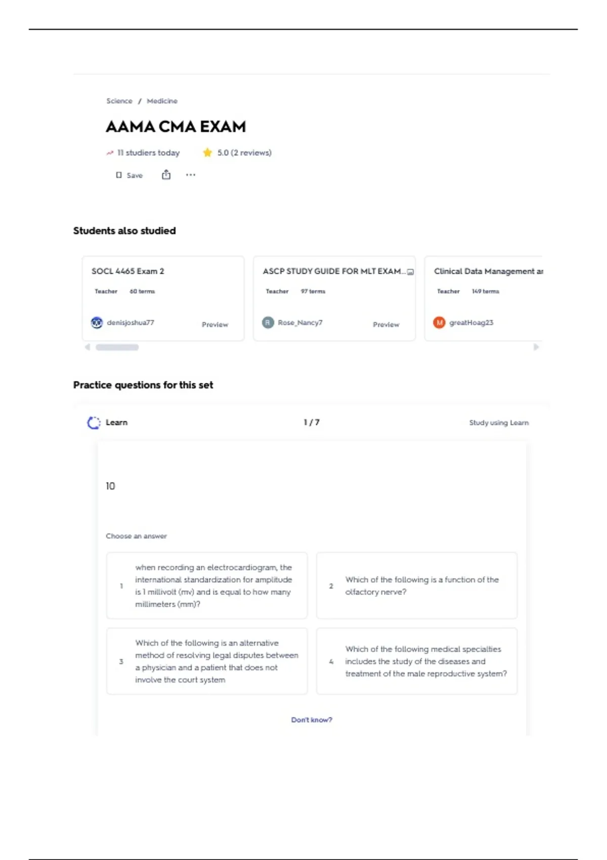 SOCL 4465 Exam 2 ASCP STUDY GUIDE FOR MLT EXAM... Clinical Data Management an