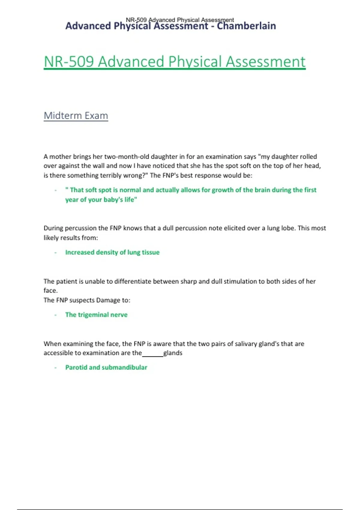 , NR509 / NR 509 Midterm Exam (Latest ):