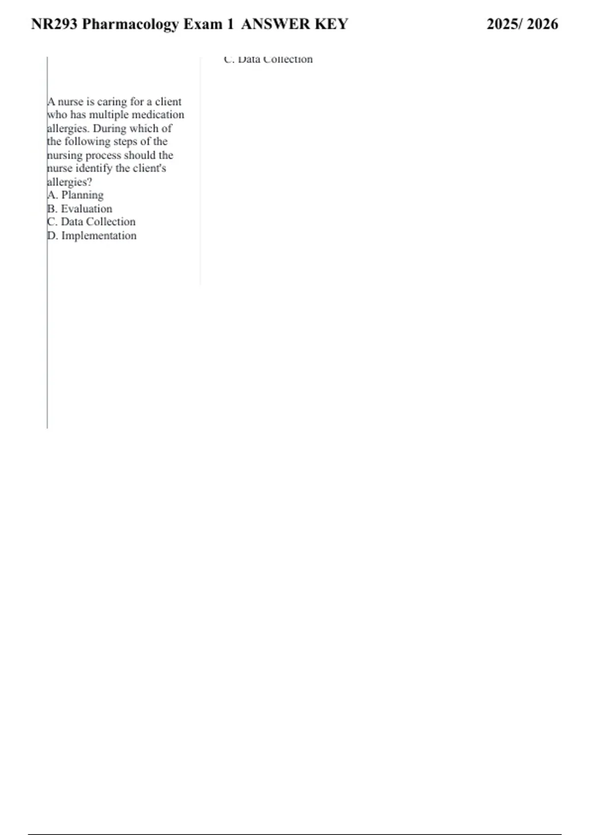 ,NR293 Pharmacology Exam 1 ANSWER KEY 2025/ 2026