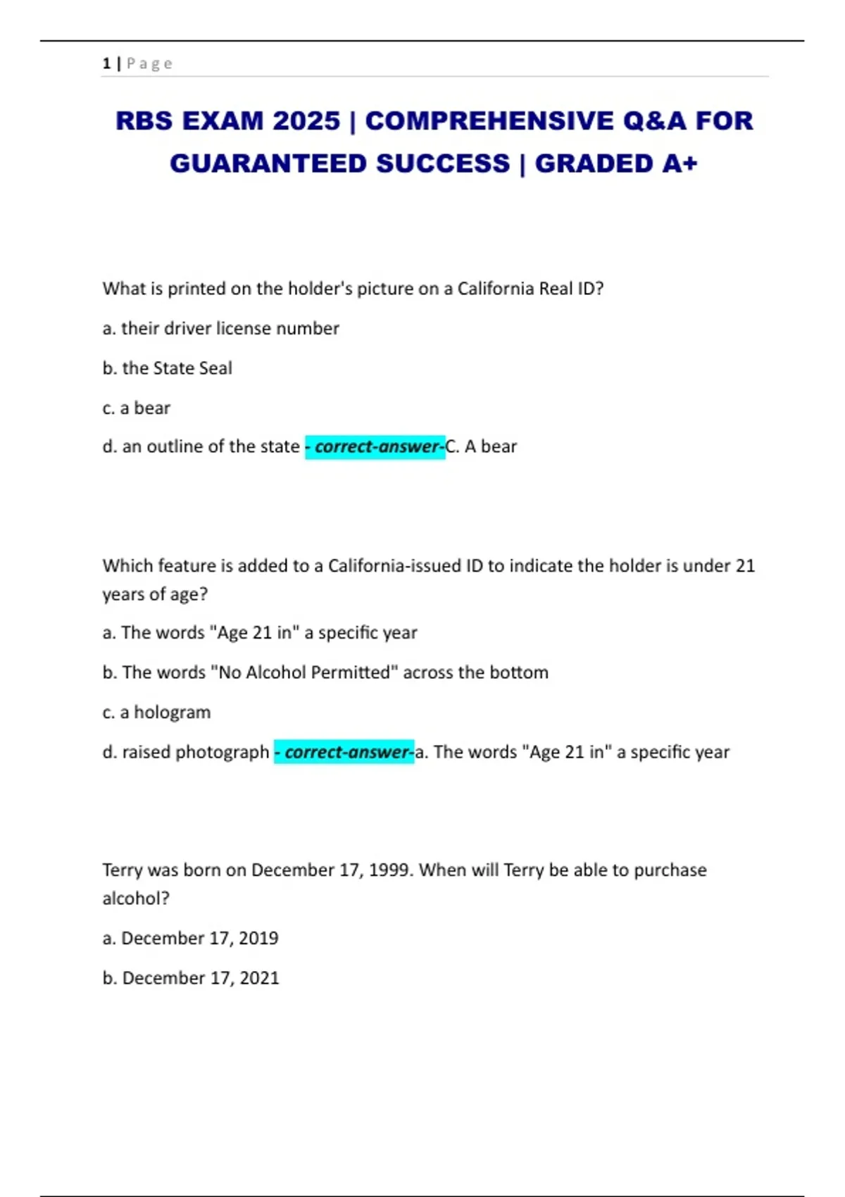 d. ask the ID holder how old they are - correct-answer-c. verify the information on