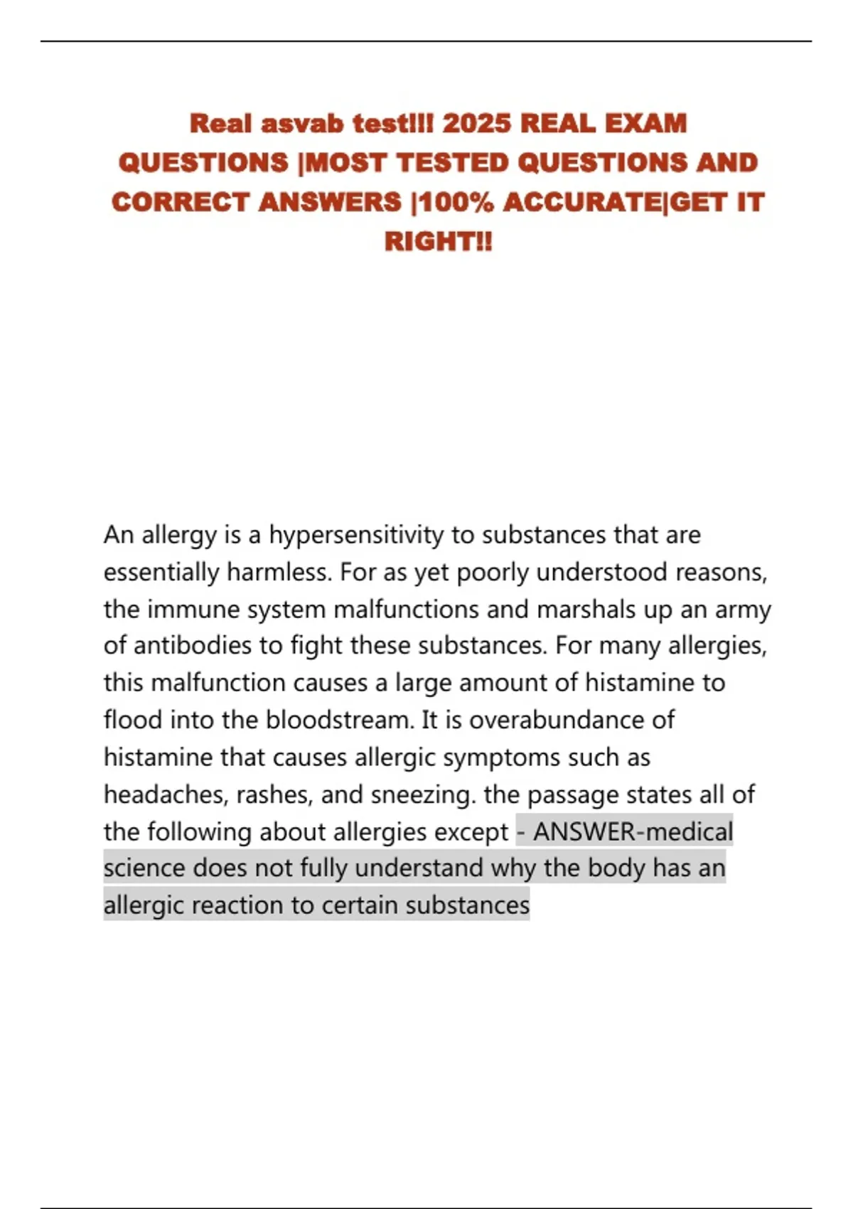 CORRECT ANSWERS |100% ACCURATE|GET IT