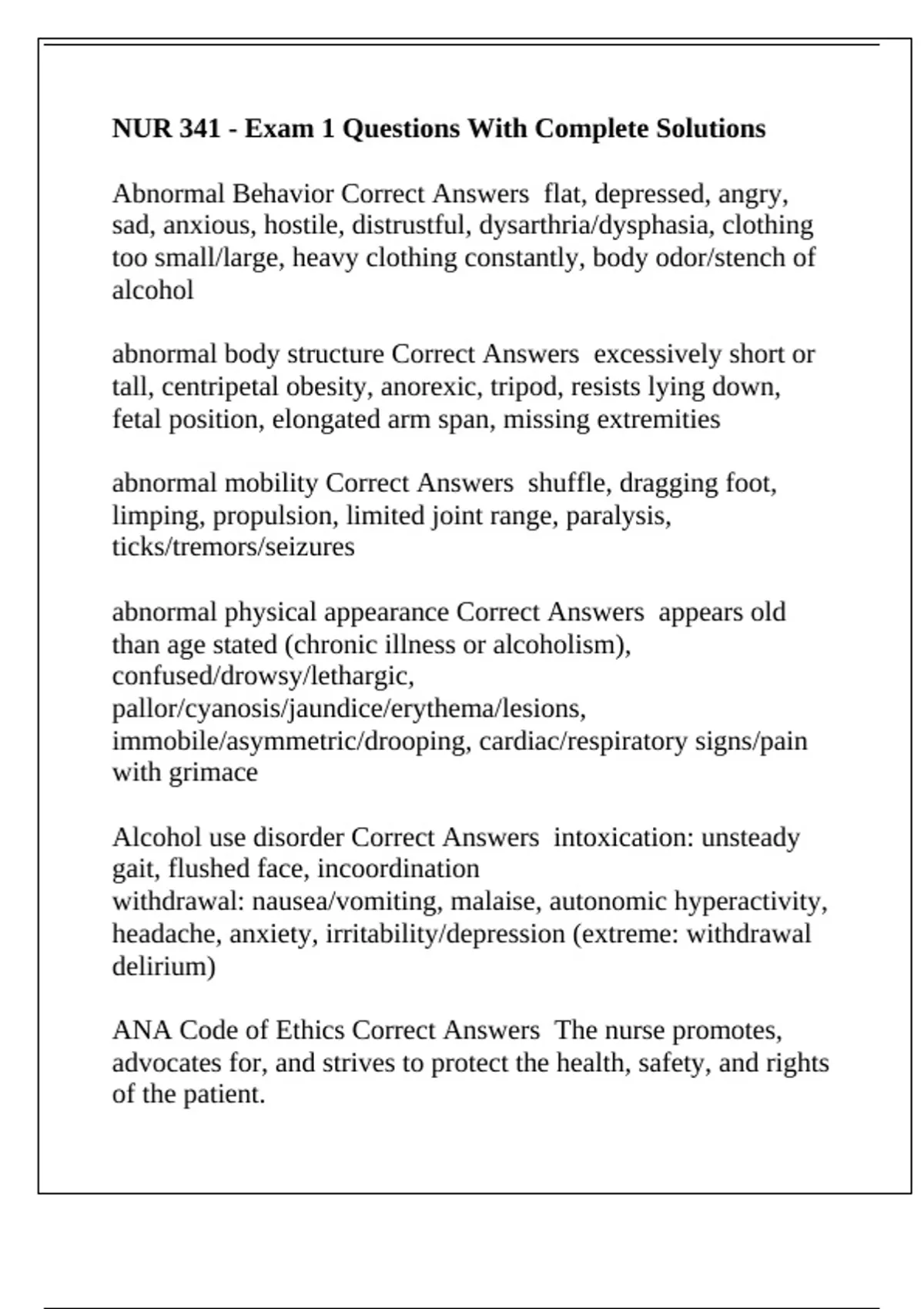 NUR 341 - Exam 1 Questions With Complete Solutions