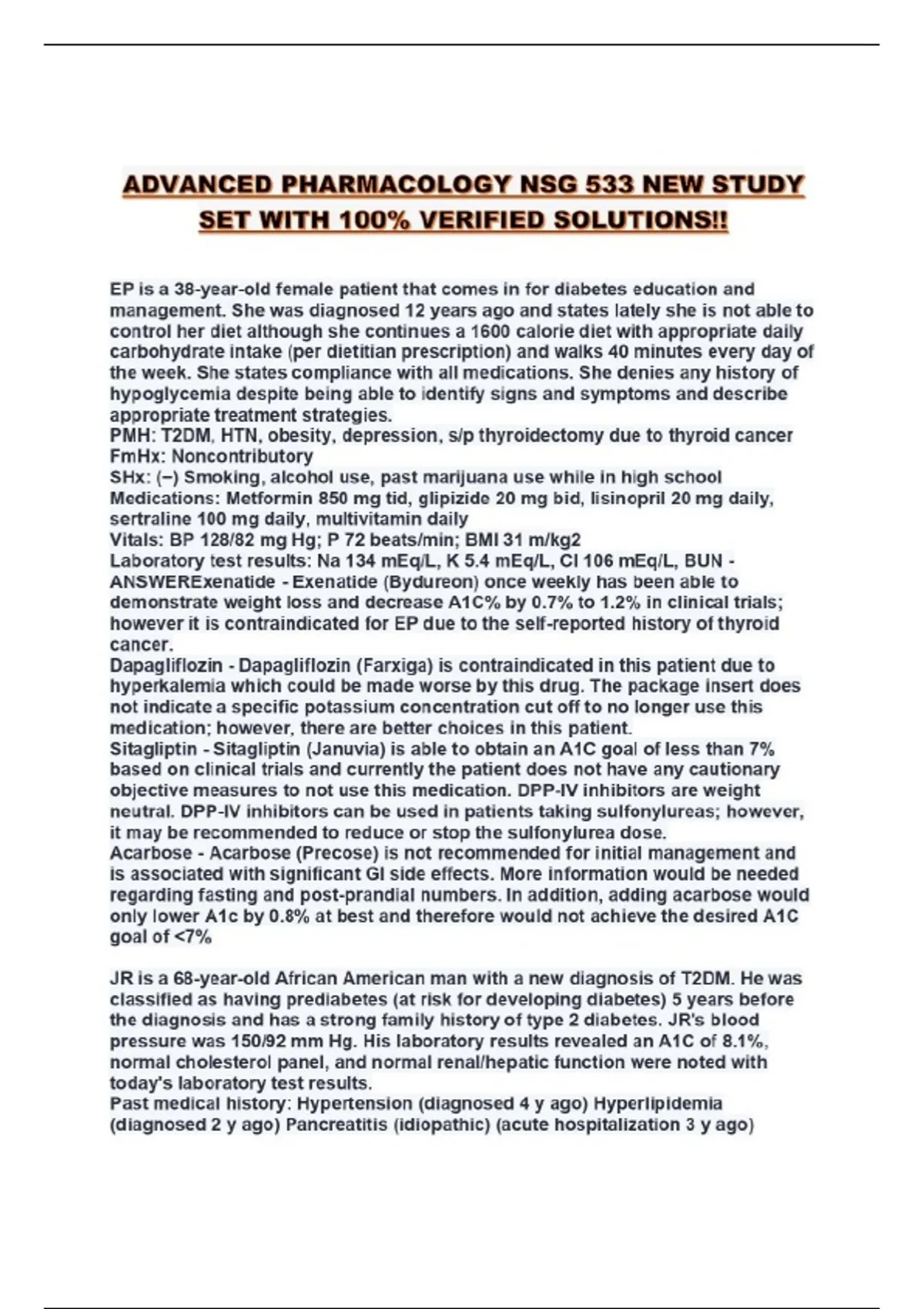 ADVANCED PHARMACOLOGY NSG 533 NEW STUDY SET WITH 100% VERIFIED SOLUTIONS!!...