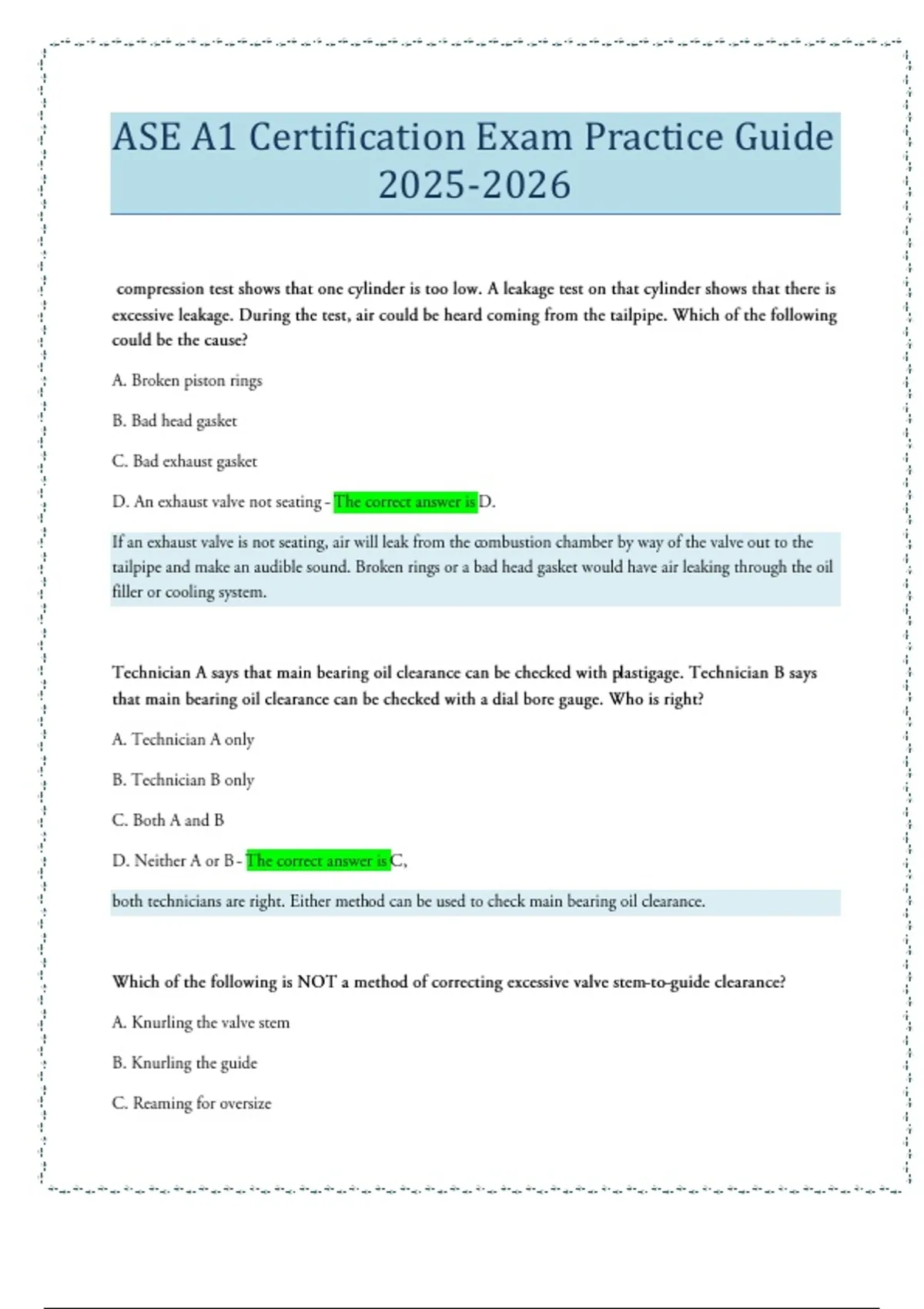 ASE A1 Certification Exam Practice Guide