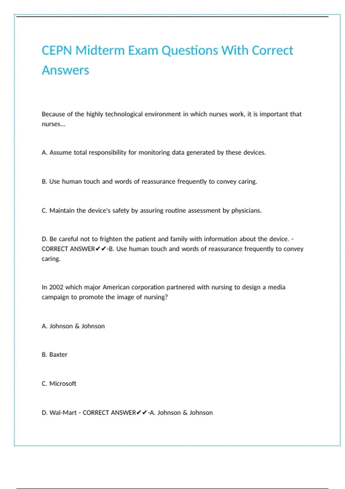 CEPN Midterm Exam Questions With Correct