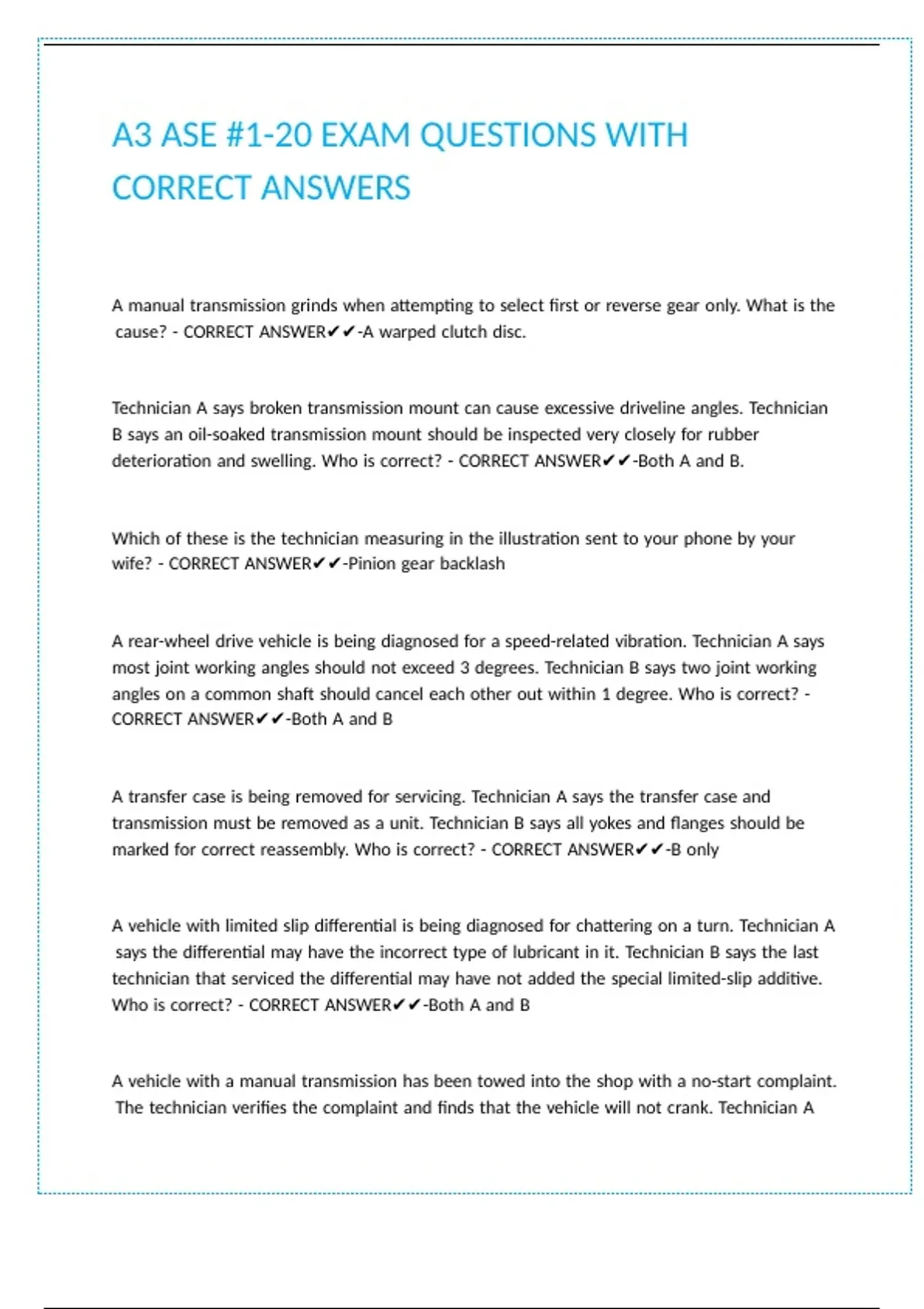 A3 ASE #1-20 EXAM QUESTIONS WITH
